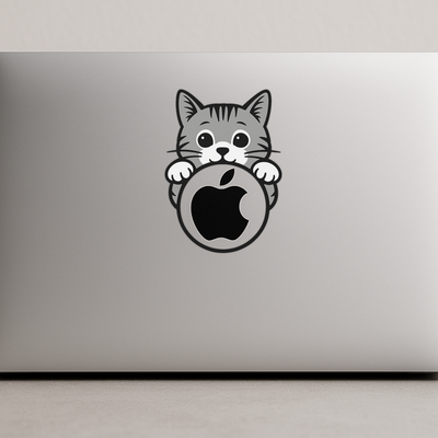 Cute Cat Laptop Logo Sticker – Water-Resistant Vinyl | Kitty Holding Circle Design for laptop Logo & More