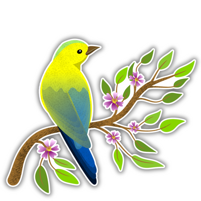 Colorful Songbird on Blooming Branch – Nature Vinyl Sticker | Cute Bird Sticker