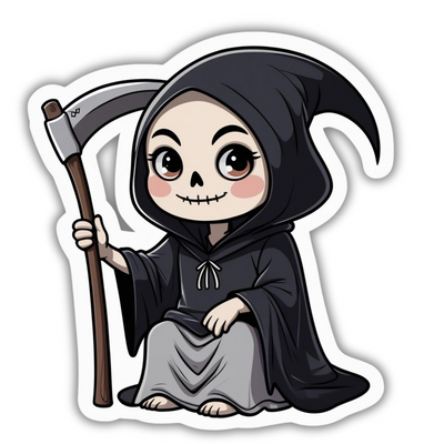 Cute Grim Reaper – Funny Skeleton Vinyl Sticker | Kawaii Death with Scythe Decal