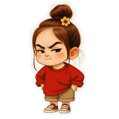 Angry Little Girl Cartoon Sticker – Funny Attitude Design | Waterproof Sticker