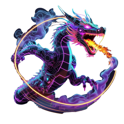Neon Cyber Dragon – Waterproof Holographic Style Vinyl Sticker