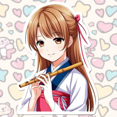 Flute Girl – Elegant Anime Musician Vinyl Sticker