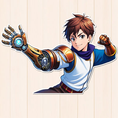 Cyborg Hero – Anime Boy with Robotic Arm Vinyl Sticker