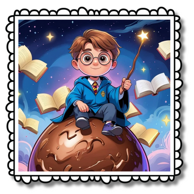 Cute Wizard Boy Sticker – Magical Cartoon Design with Wand & Flying Books | Water-Resistant