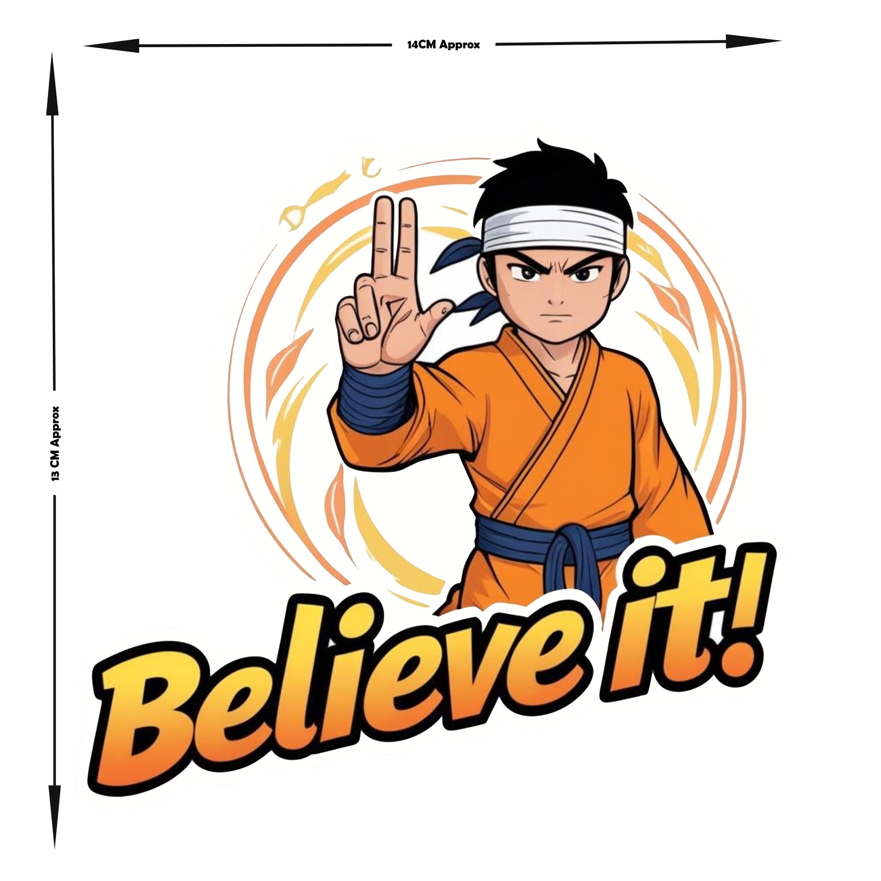 Embrace your inner ninja with our Believe It! sticker – inspired by the energy, spirit, and catchphrase of your favorite anime hero! This bold and fiery design features a determined ninja pose with a vibrant orange outfit, ready to unleash jutsu and motivation. Perfect for anime fans, cosplayers, and dream chasers, this waterproof vinyl sticker is a must-have for laptops, journals, consoles, and more. Whether you're hustling through exams or training for your own ninja way, this sticker keeps your spirit fired up!