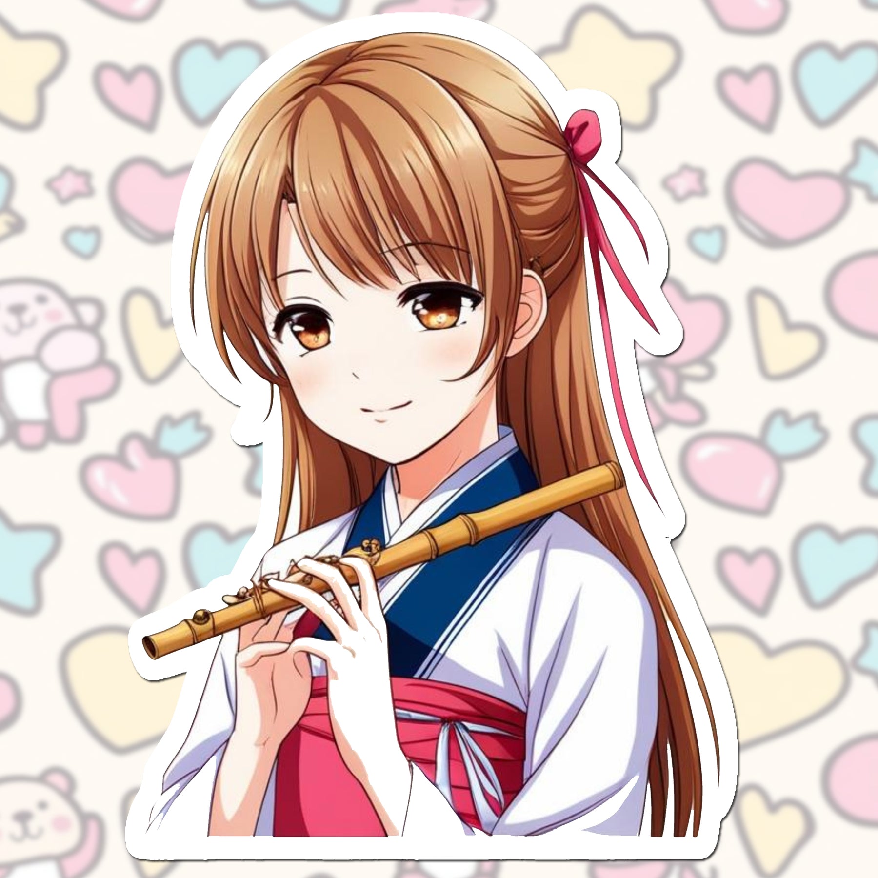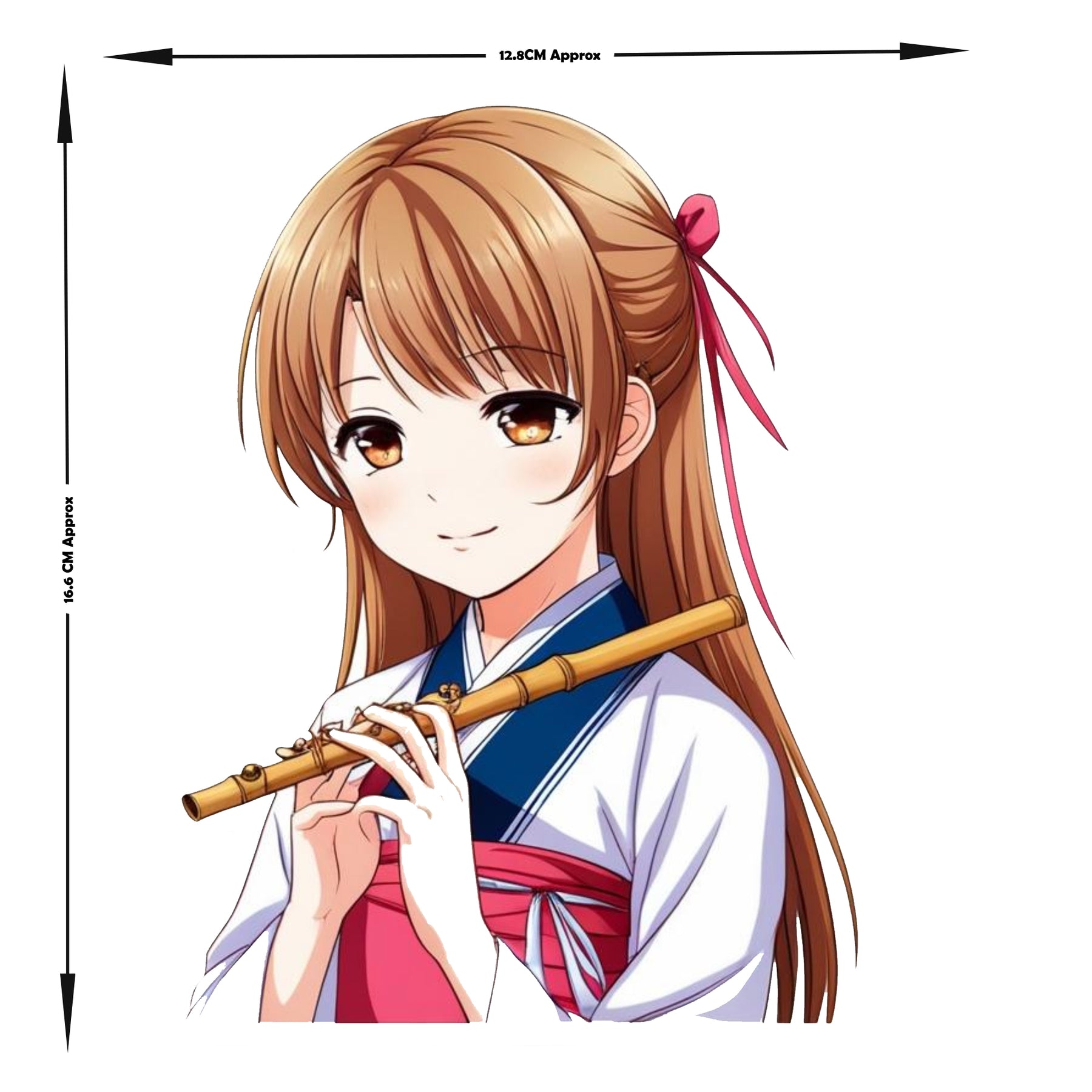 Graceful and serene, the Flute Girl sticker captures the charm of anime aesthetics blended with traditional culture. Featuring a gentle anime girl in a classic outfit holding a bamboo flute, this elegant design is perfect for musicians, anime lovers, and anyone who appreciates peaceful energy. Stick it on your journal, laptop, instrument case, or mirror—it’s a soft reminder of calm and creativity.