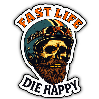 WATERPROOF FAST LIFE DIE HAPPY STICKER – BIKE & HELMET DECAL