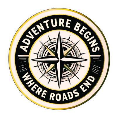 ADVENTURE BEGINS WHERE ROADS END STICKER – COMPASS DESIGN DECAL