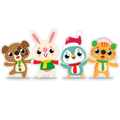 Winter Animal Friends Sticker – Waterproof Viny | Cute Christmas-Themed Bear, Bunny, Penguin & Cat