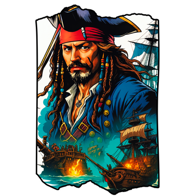 PIRATE CAPTAIN STICKER – VINTAGE SHIP ADVENTURE DECAL