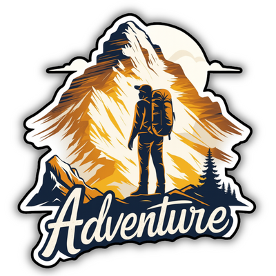 ADVENTURE MOUNTAIN HIKER STICKER – TRAVEL & CAMPING DECAL