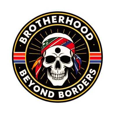 BROTHERHOOD BEYOND BORDERS STICKER – BIKER SKULL DECAL