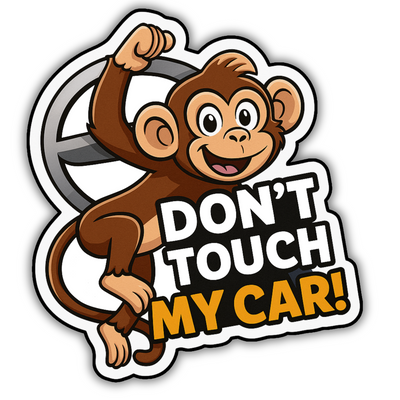 “Don’t Touch My Car!” Hanging Monkey Sticker – Waterproof Funny Car Warning Decal
