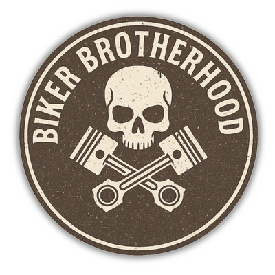 BIKER BROTHERHOOD STICKER – SKULL AND PISTON DESIGN DECAL