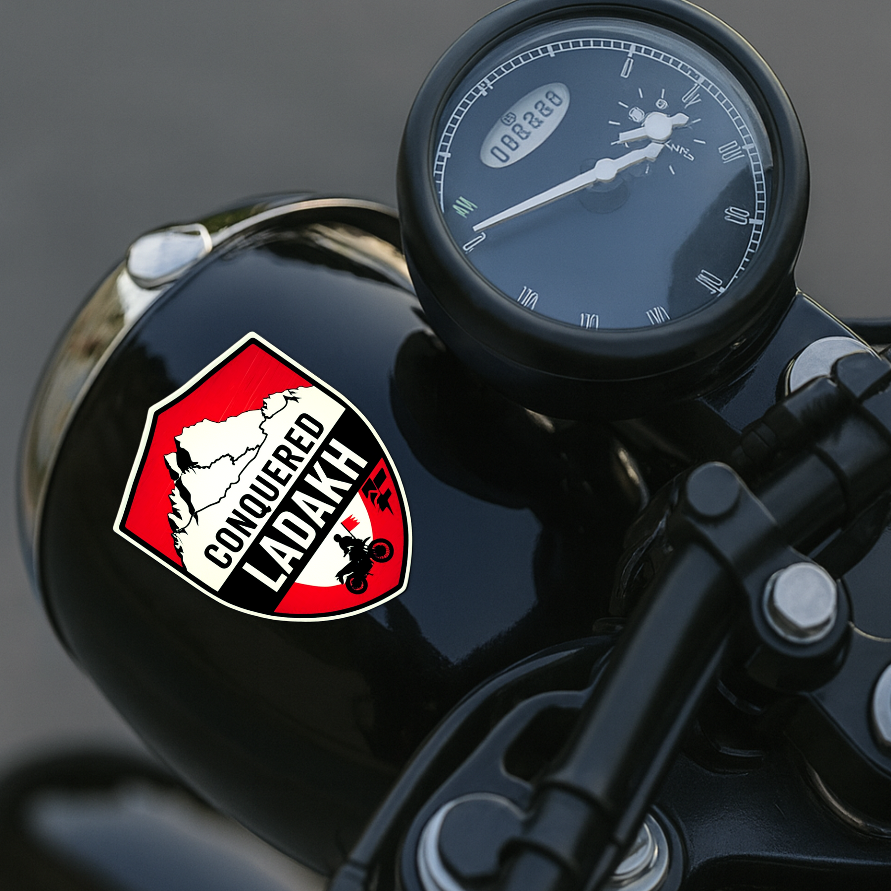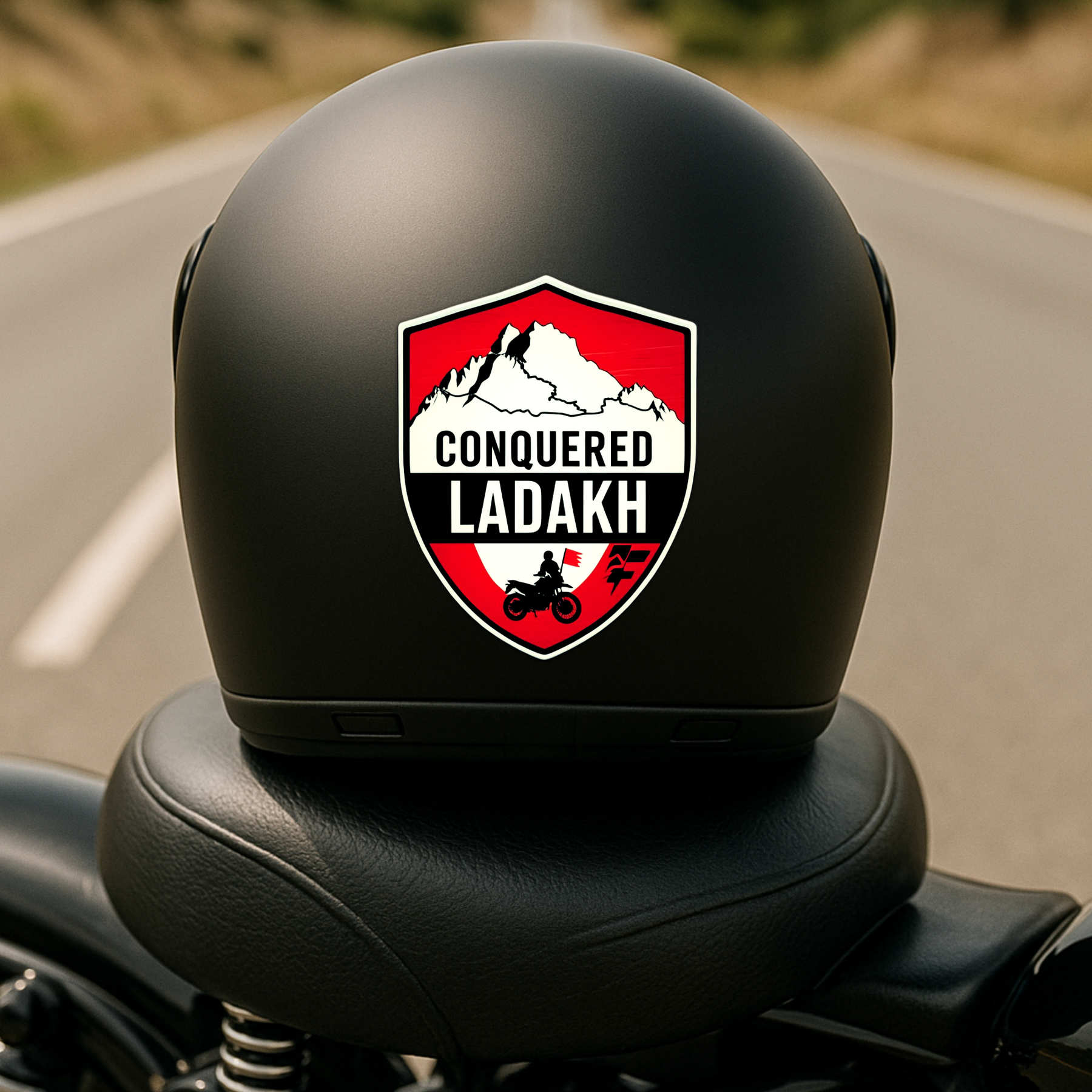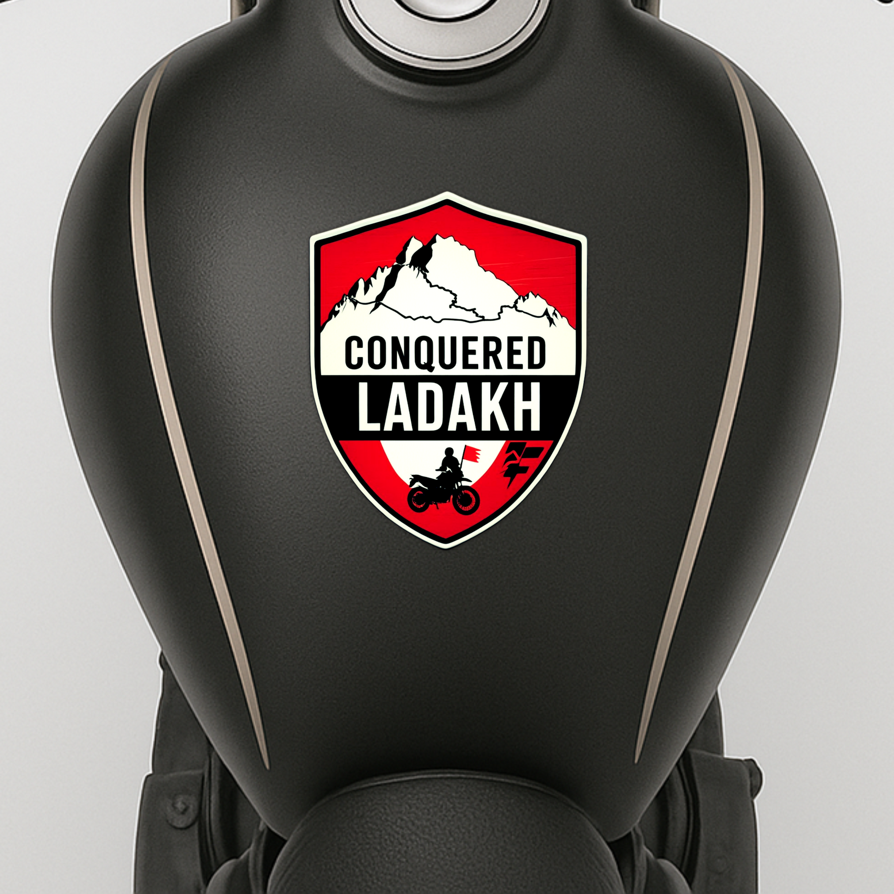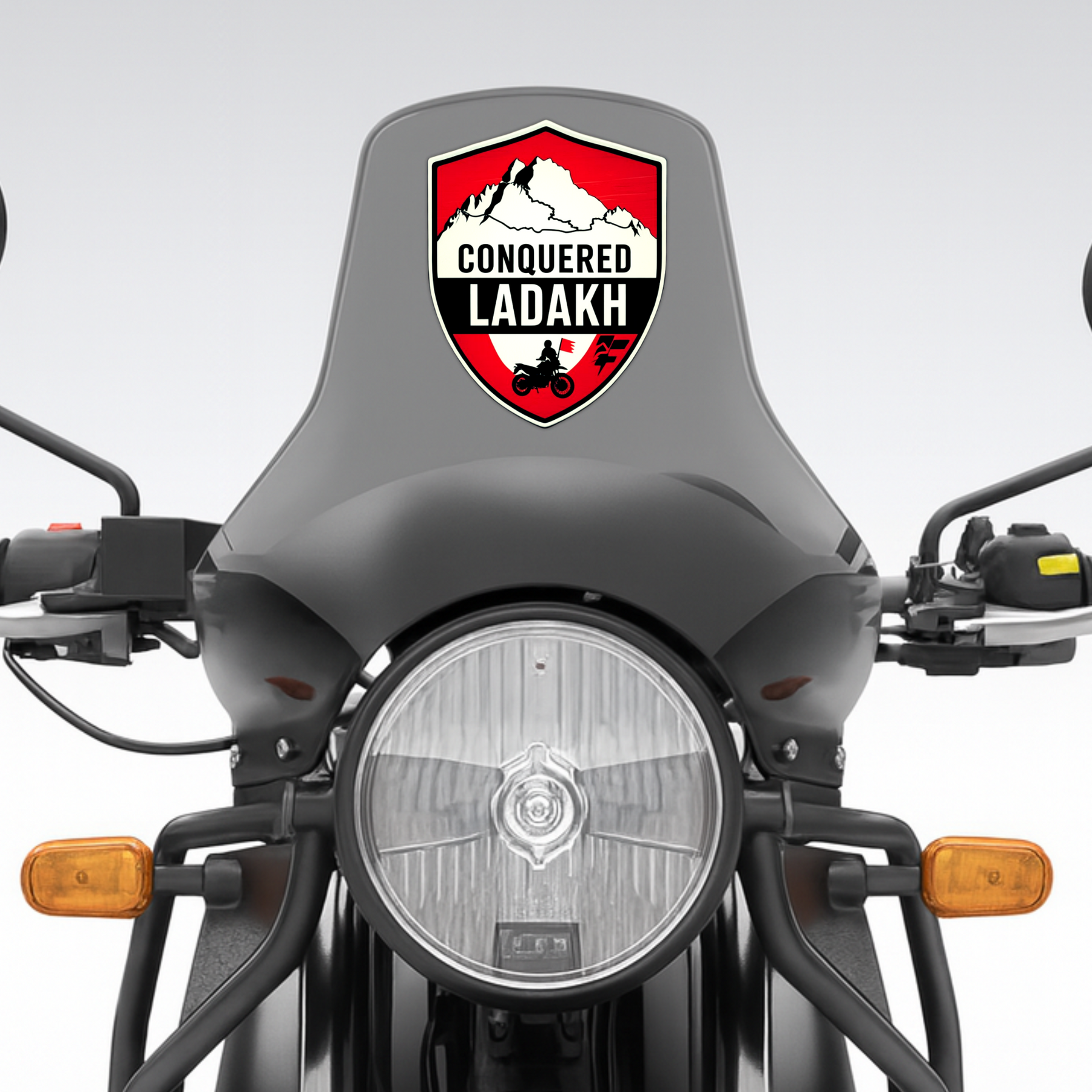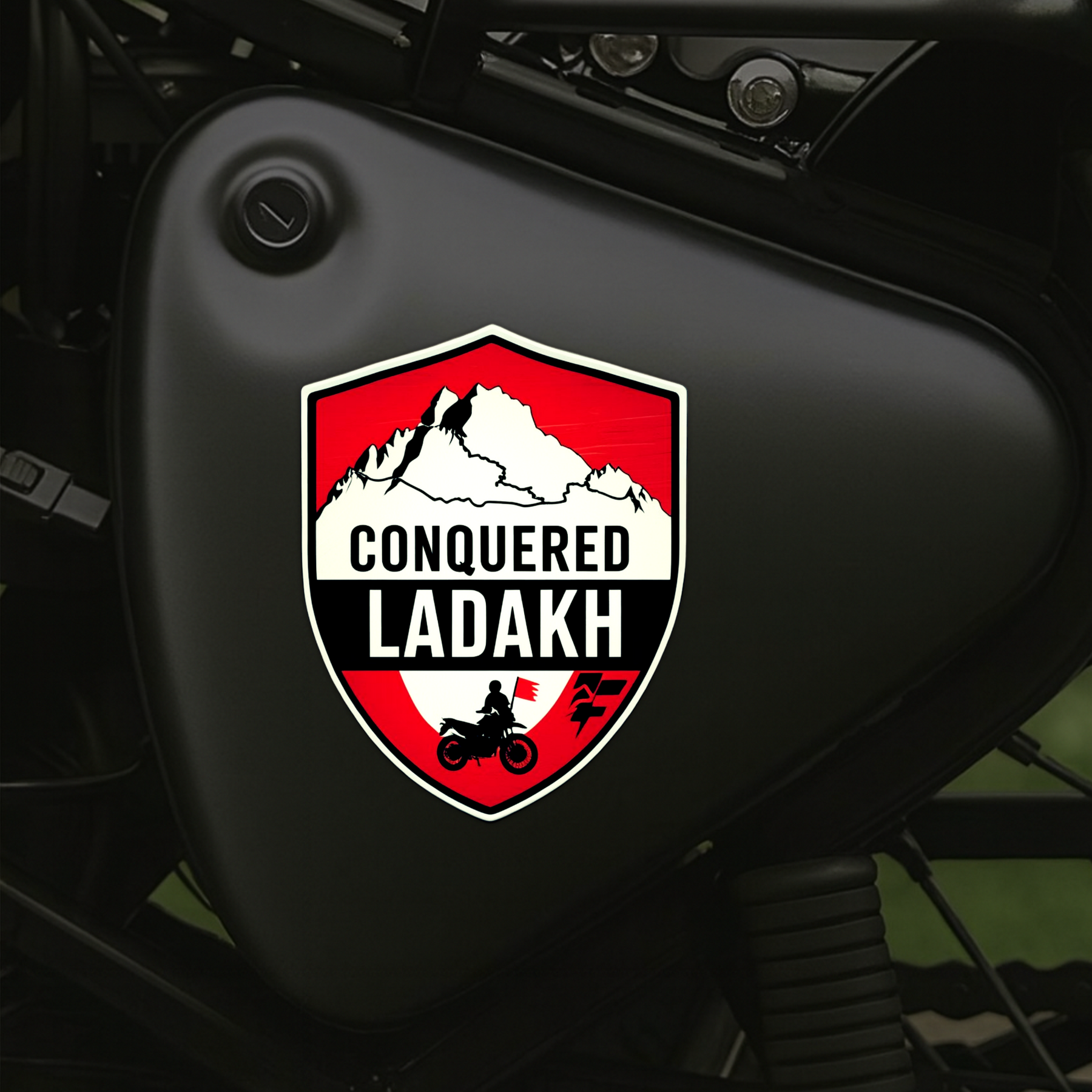 Celebrate your epic journey with the STIXY Conquered Ladakh Sticker, a waterproof STIXY sticker that symbolizes strength, endurance, and adventure. Designed with bold mountain peaks and a biker silhouette carrying a flag, this sticker proudly marks your successful Ladakh ride — a badge of honor for every true adventurer.