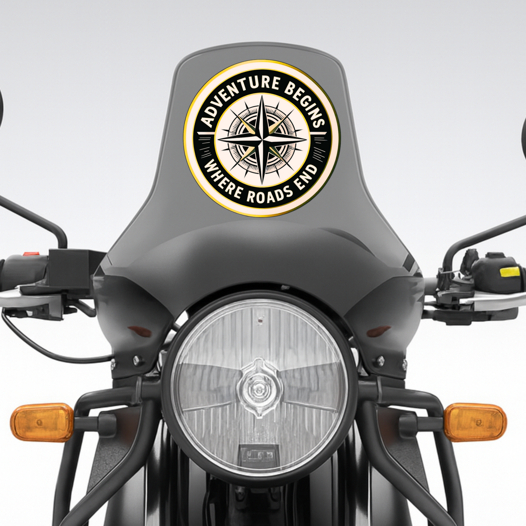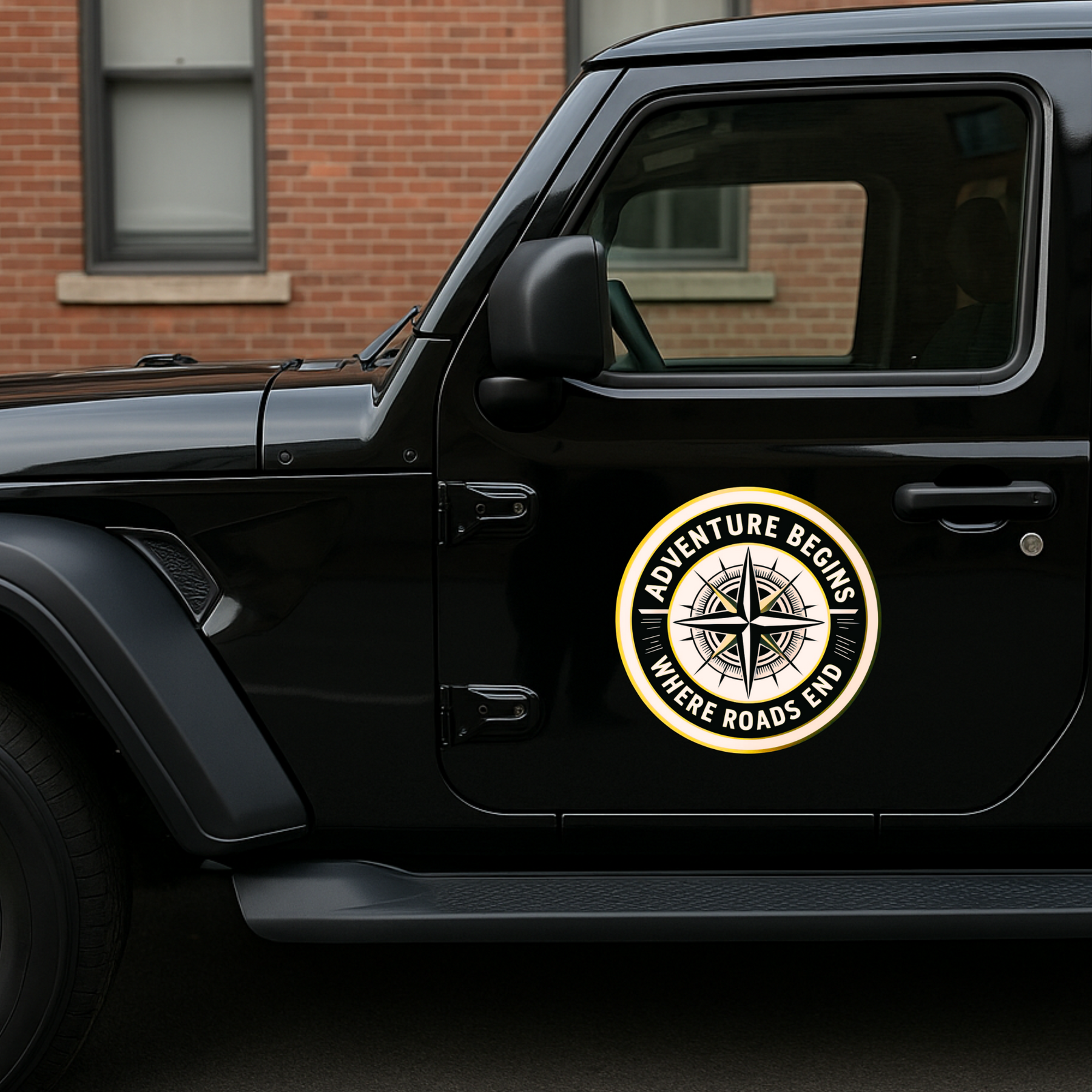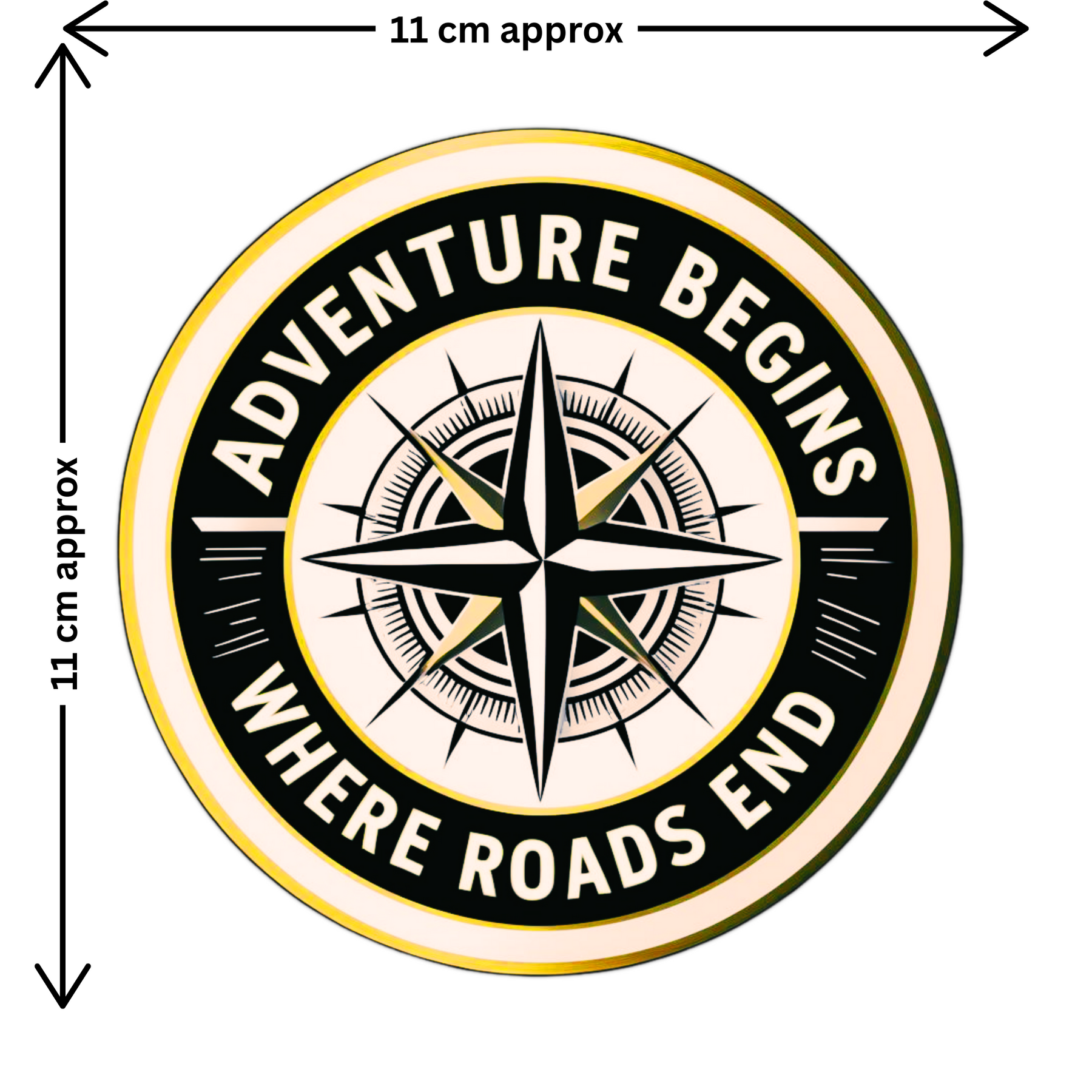 Set your spirit free with the STIXY Adventure Begins Where Roads End Sticker, a waterproof STIXY sticker made for true explorers. Featuring a detailed compass design surrounded by motivational text, it perfectly symbolizes the call of the wild and the journey beyond the ordinary.