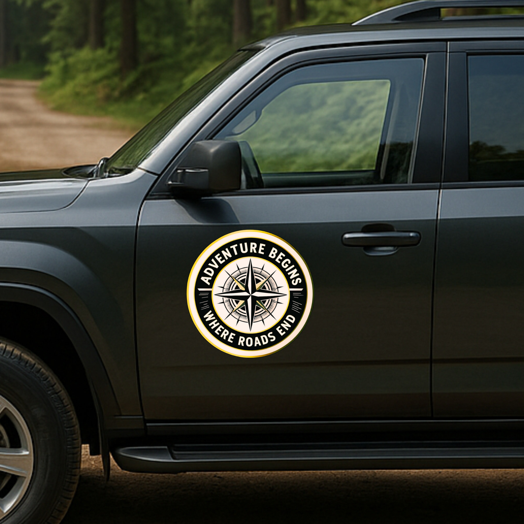 Crafted with durable waterproof vinyl and UV-resistant lamination, this sticker is built for all terrains — perfect for jeeps, bikes, helmets, or travel gear. Let every ride remind you that adventure starts where the road ends.