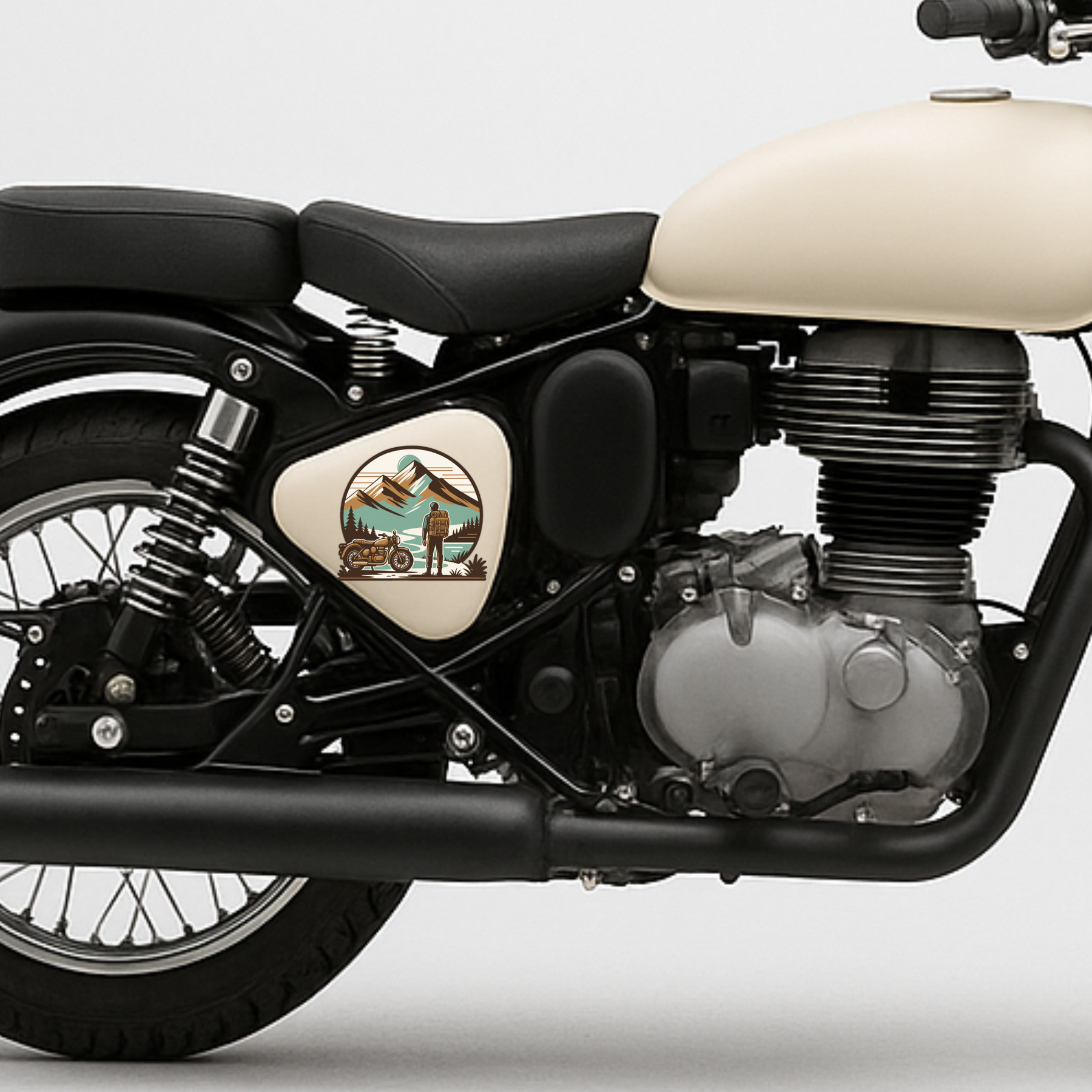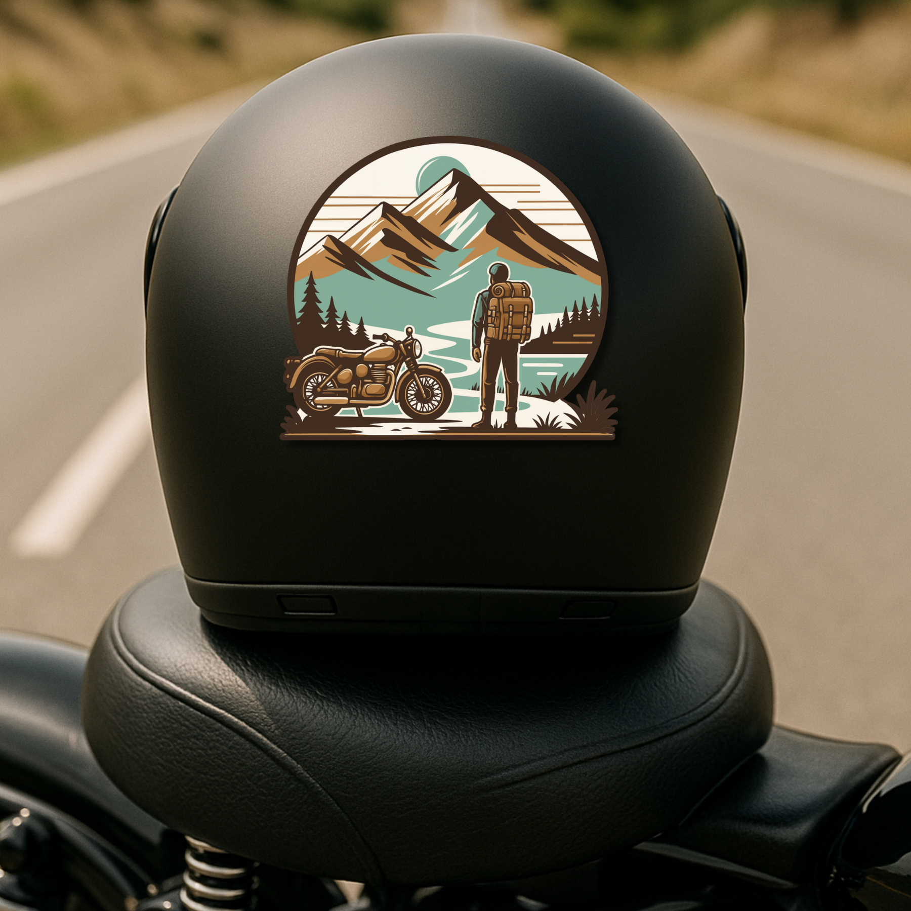 Printed on premium waterproof vinyl with UV and scratch-resistant lamination, it ensures long-lasting durability and shine. Perfect for bikes, helmets, cars, or travel gear — a timeless reminder that every journey begins with one ride.