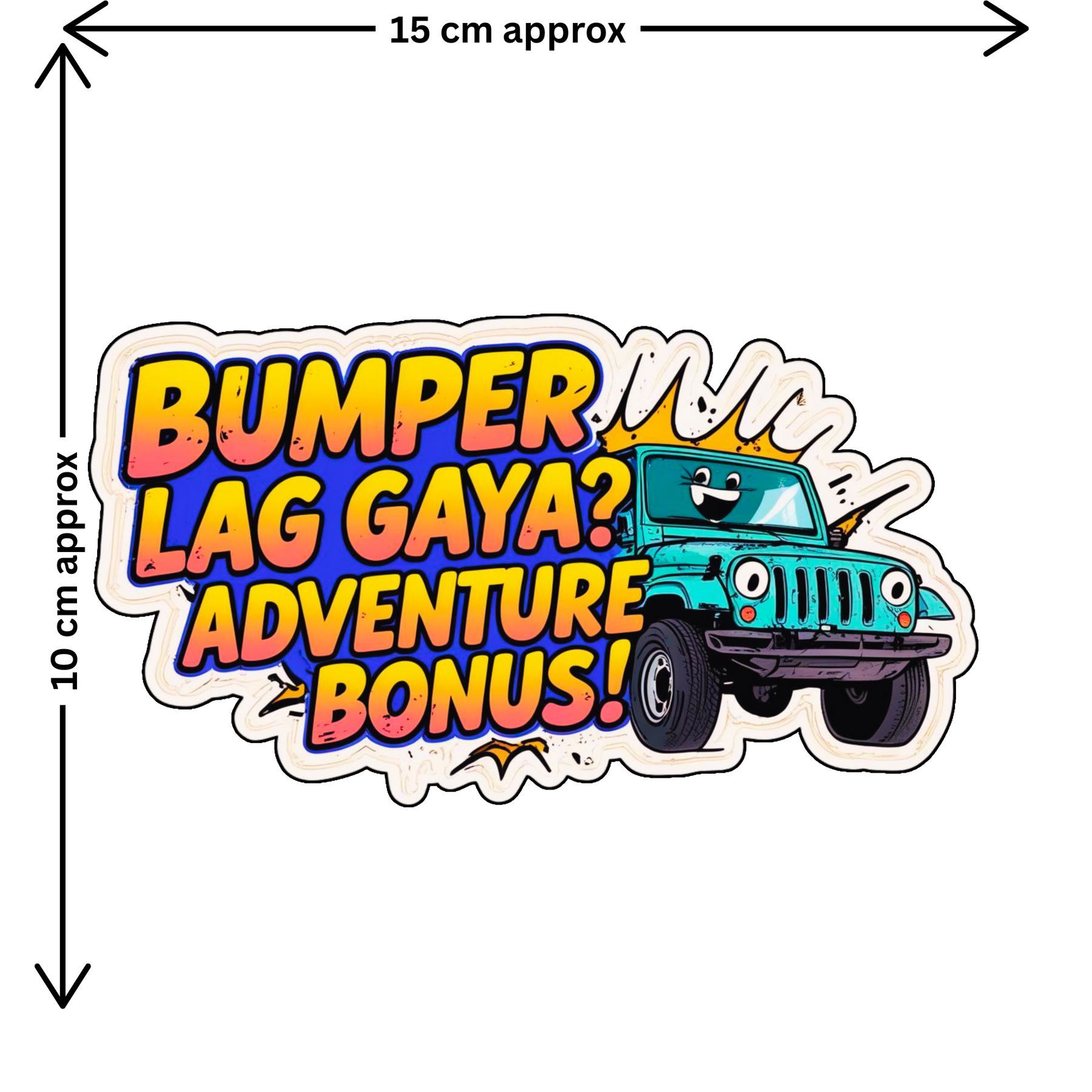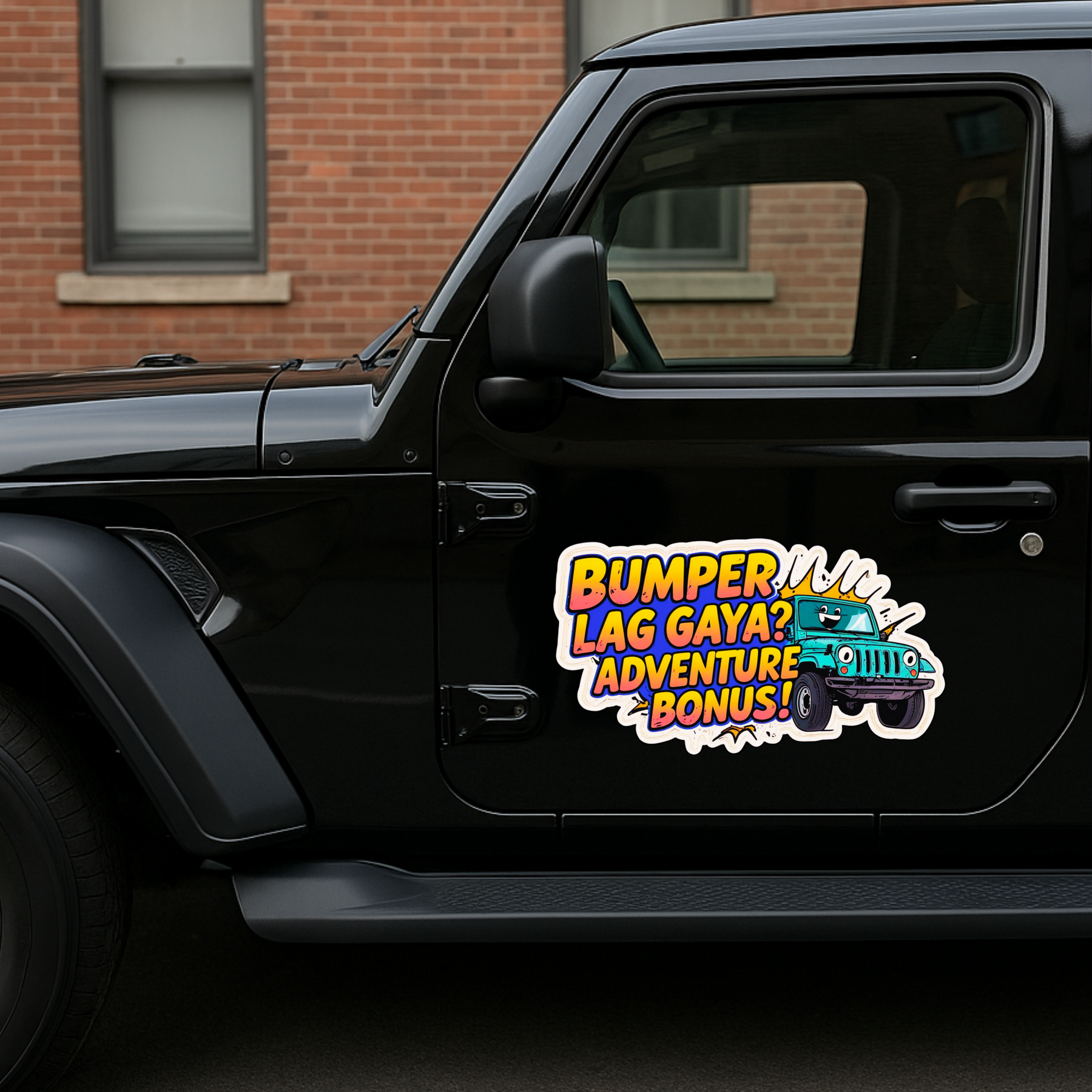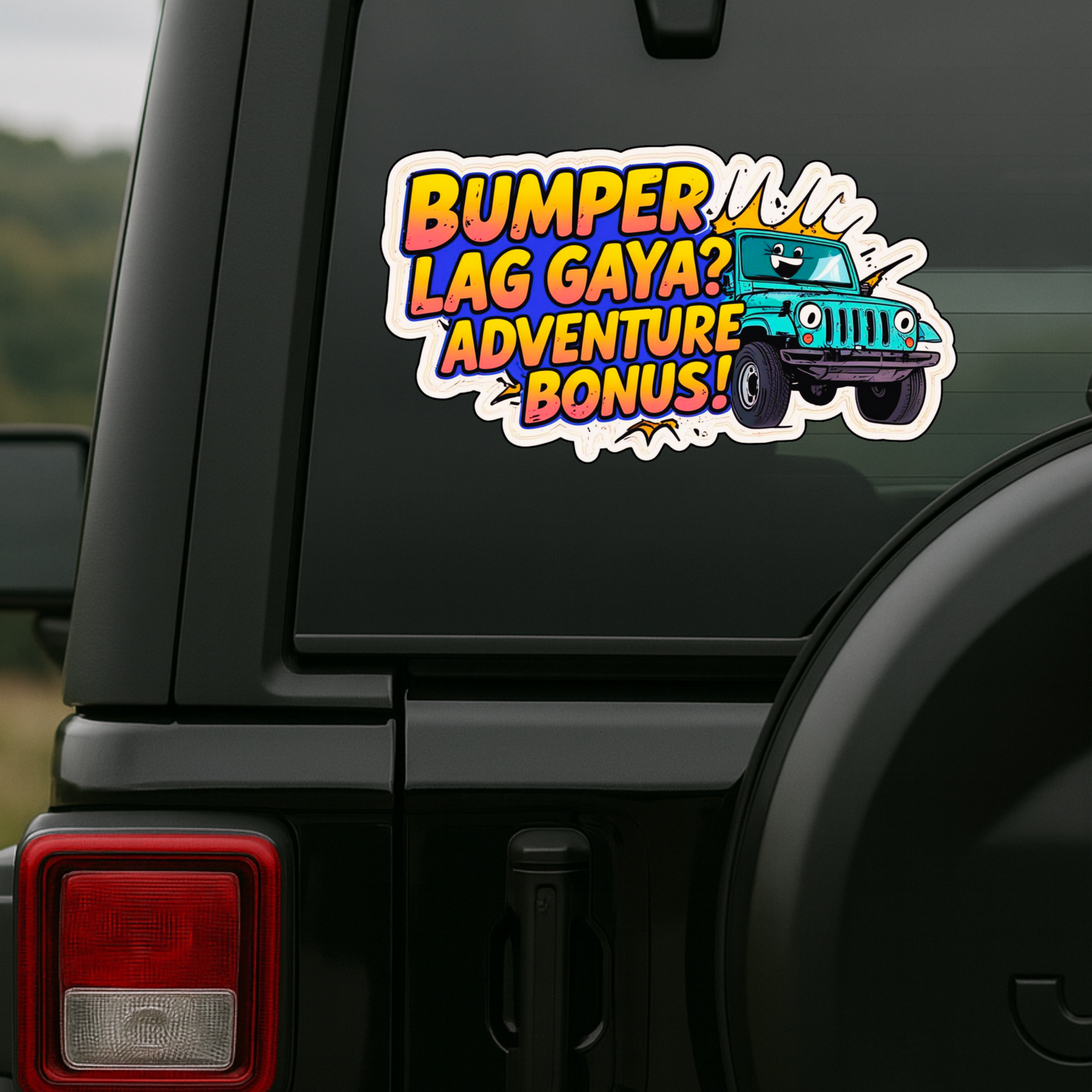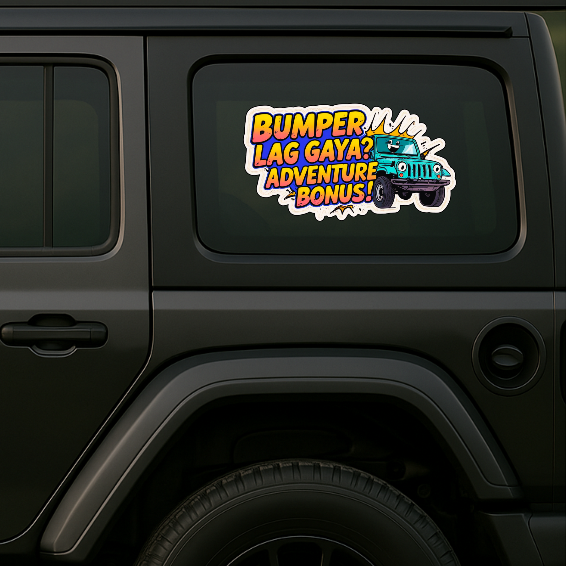 Turn every bump into a laugh with the STIXY Bumper Lag Gaya? Adventure Bonus! Sticker, a waterproof STIXY sticker made for off-road lovers and jeep enthusiasts. Designed with bold, comic-style text and a cheerful cartoon jeep, it’s the perfect mix of humor and adventure for those who don’t take rough rides too seriously.