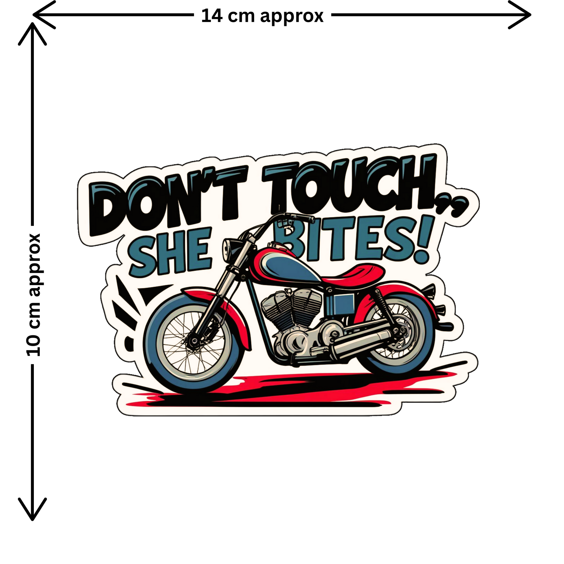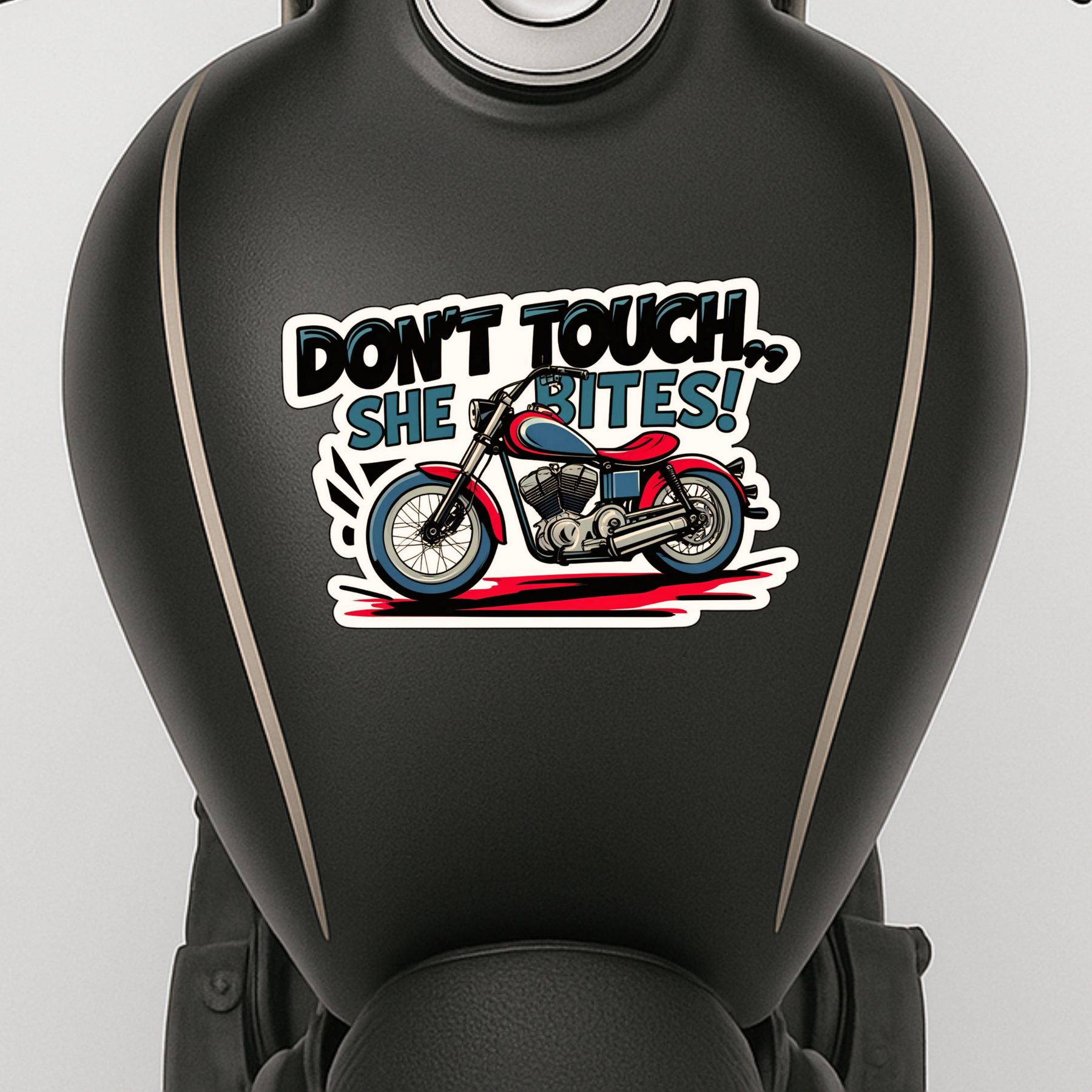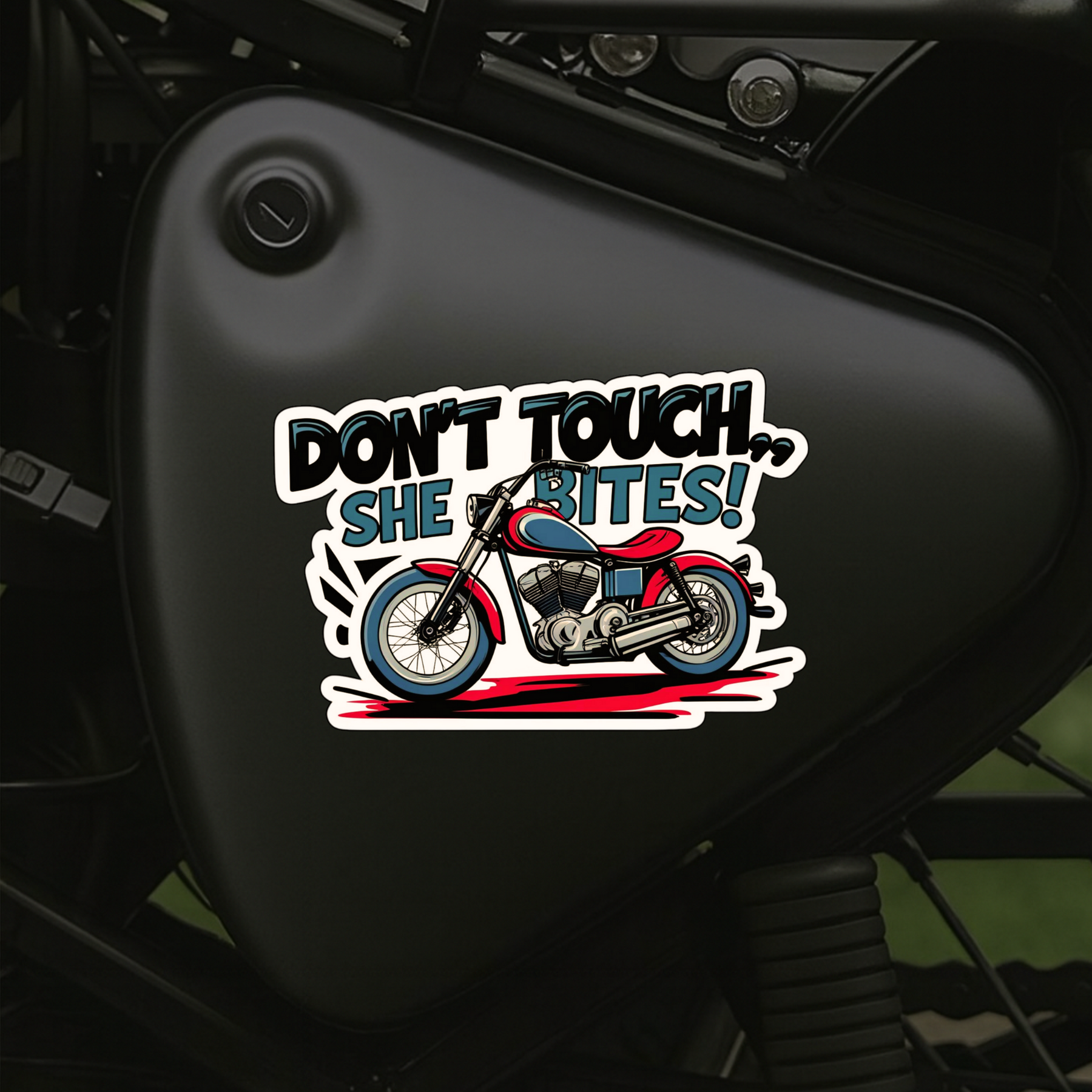 Show off your biker attitude with the STIXY Don’t Touch, She Bites! Sticker, a waterproof STIXY sticker made for riders who guard their bikes like treasure. Featuring a bold, retro-styled bike illustration and cheeky typography, this sticker delivers the perfect mix of humor and warning for anyone who dares to touch your ride.