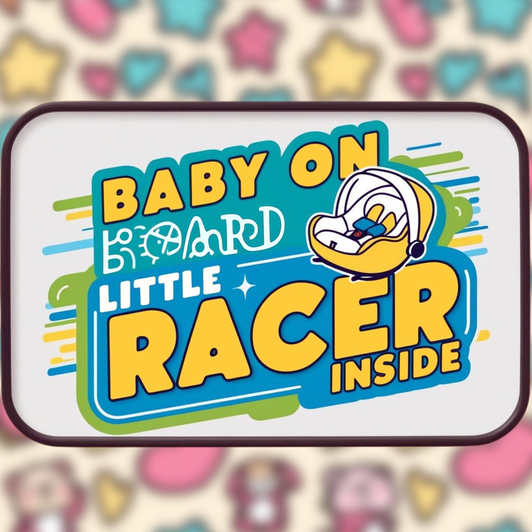 Bring attention with bold colors and a fun design using our “Colorful Baby On Board – Little Racer Inside” sticker! With a playful race-themed graphic and bright typography, this vinyl decal is designed to alert other drivers to drive safely around your car while proudly showing off your precious cargo. Perfect for rear windshields, bumpers, or side windows, this weatherproof sticker makes safety stylish for your little racer in their seat.