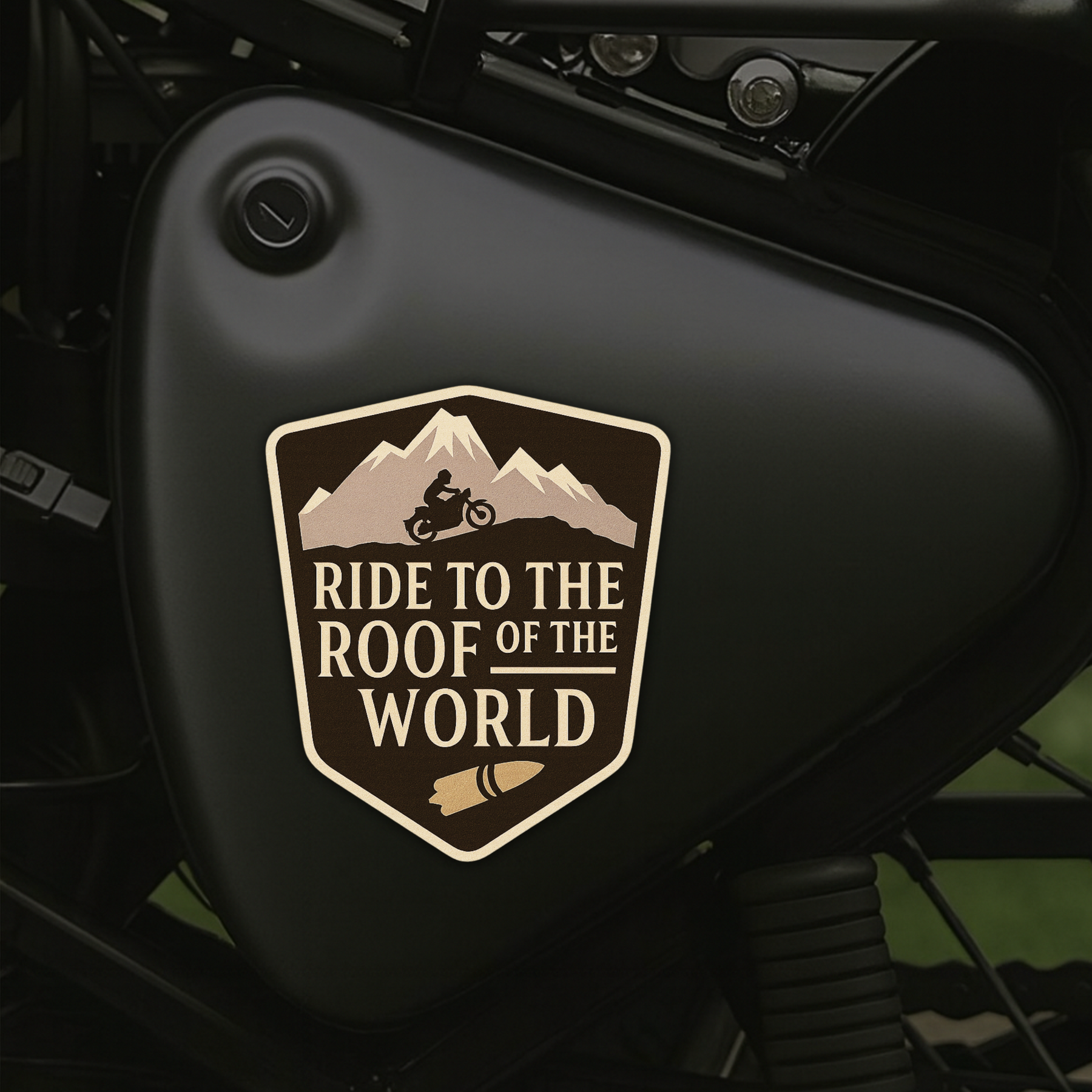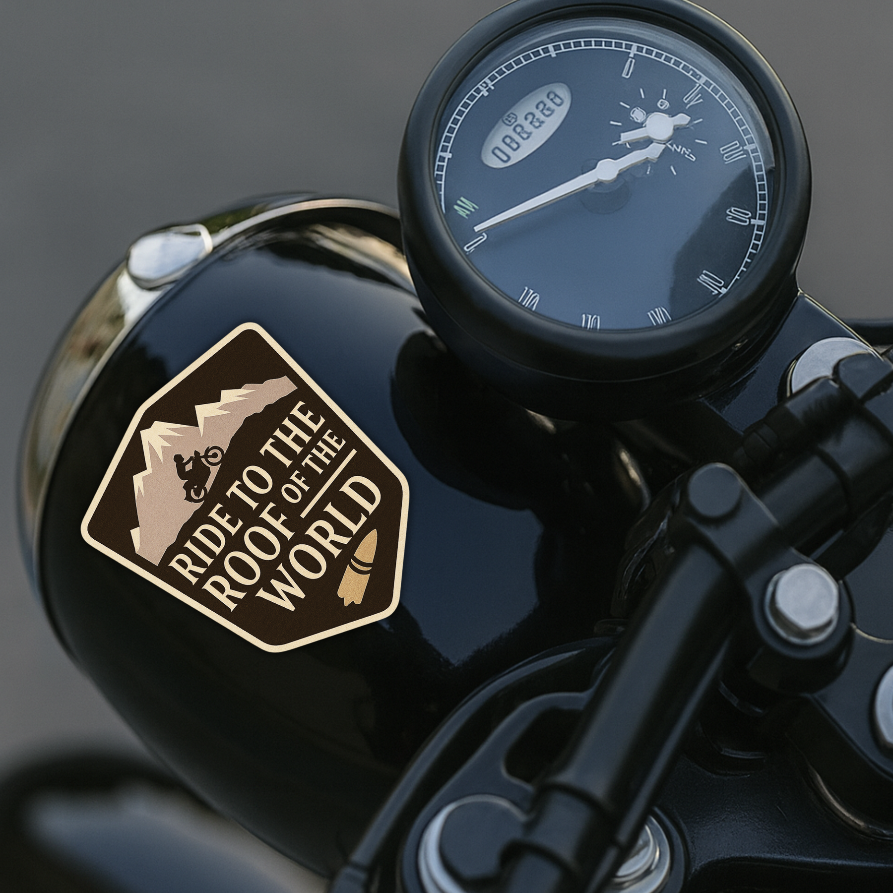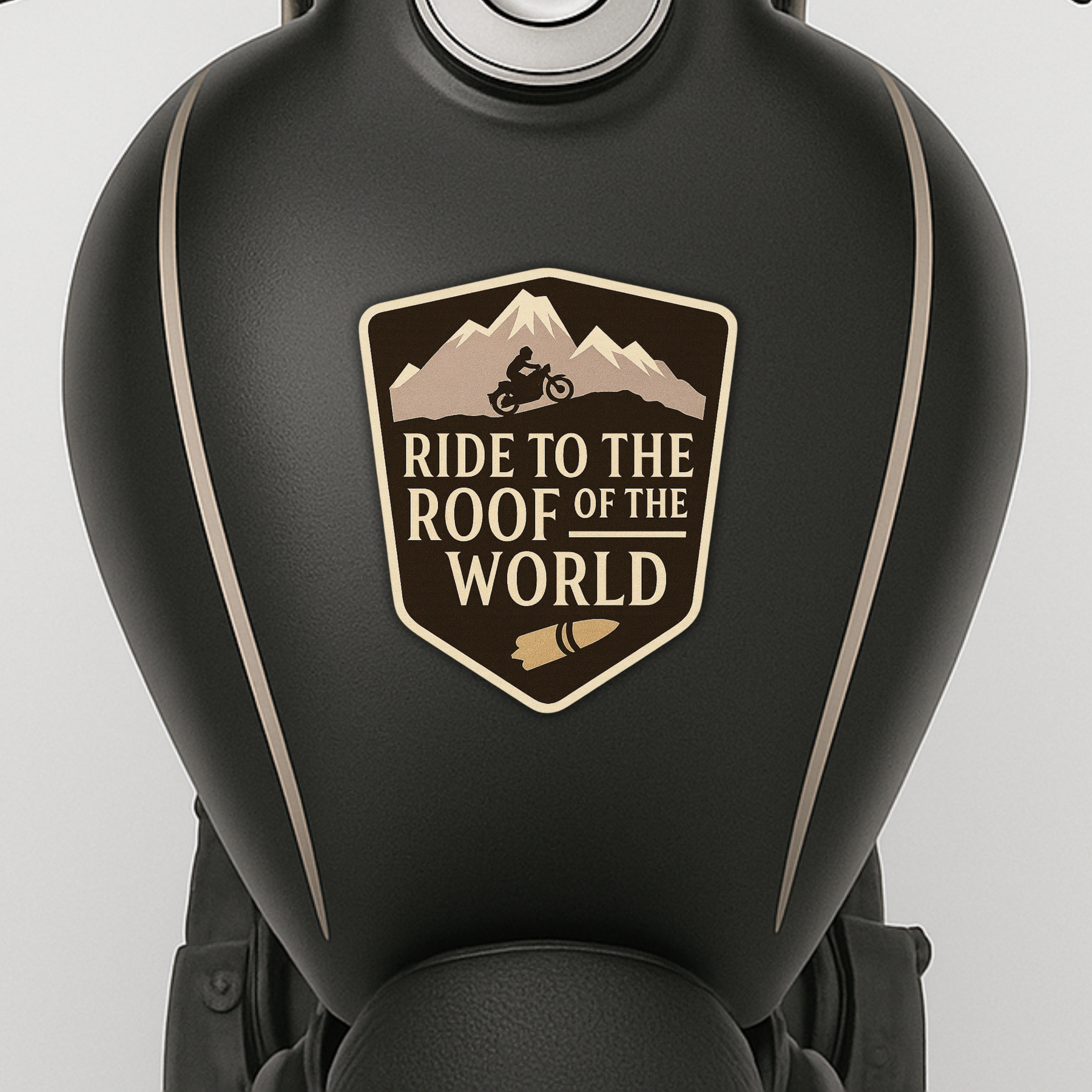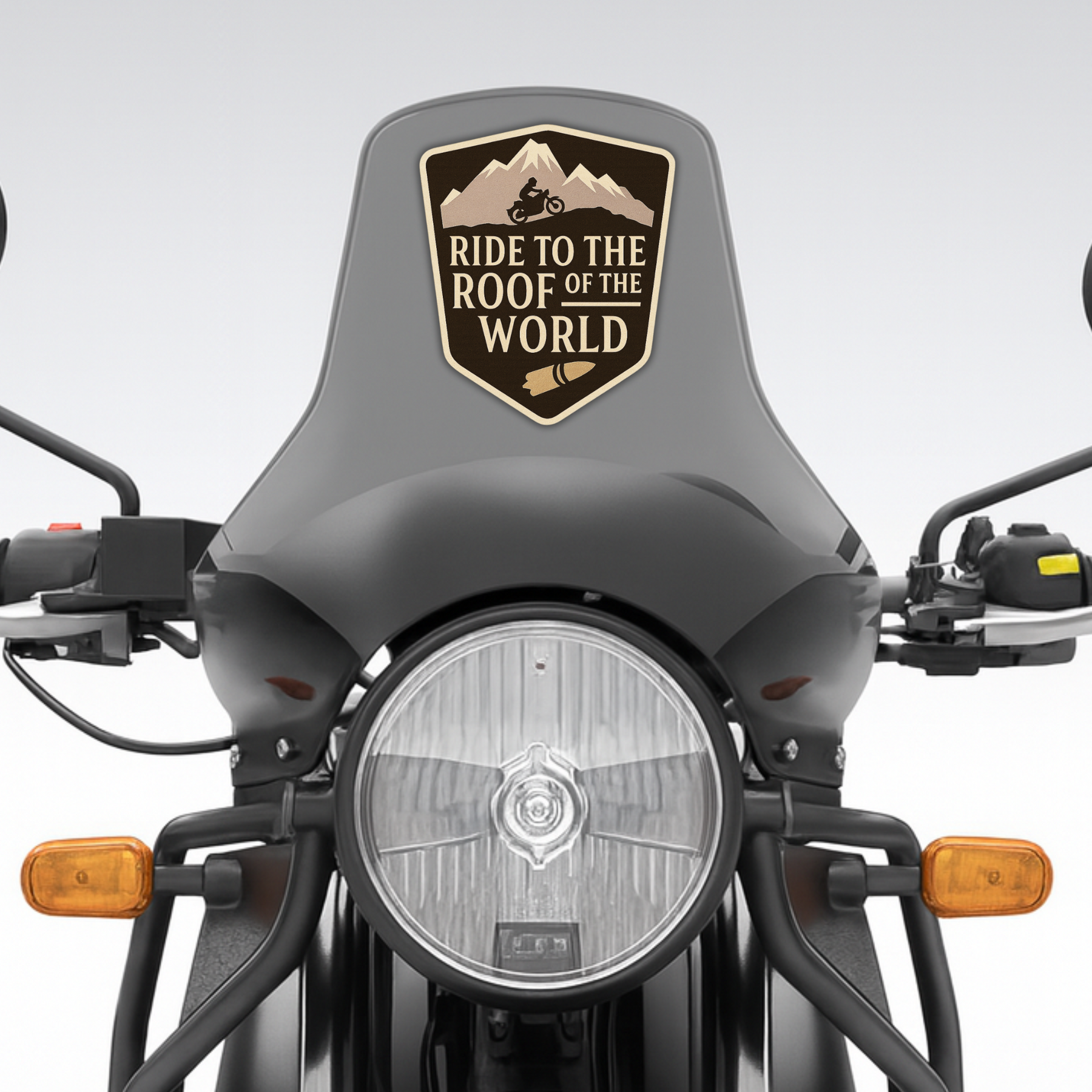 Crafted from durable waterproof vinyl and UV-protected lamination, it’s perfect for your bike tank, helmet, or travel gear. Whether you’ve ridden the mighty passes or plan to, this badge celebrates the spirit of Himalayan adventure.