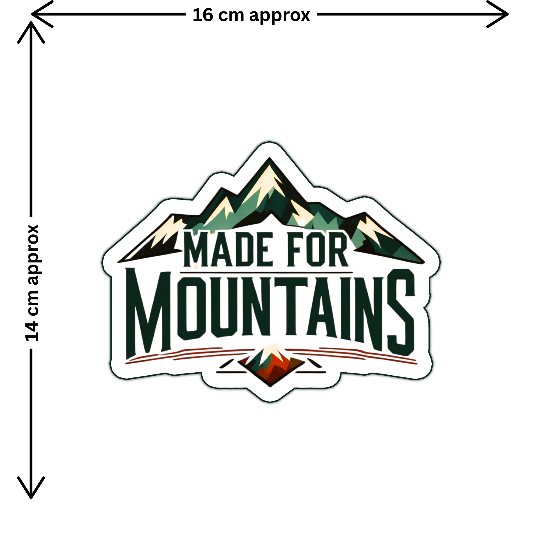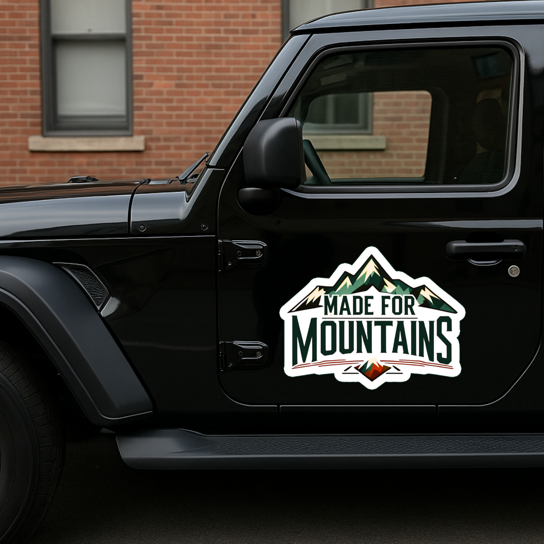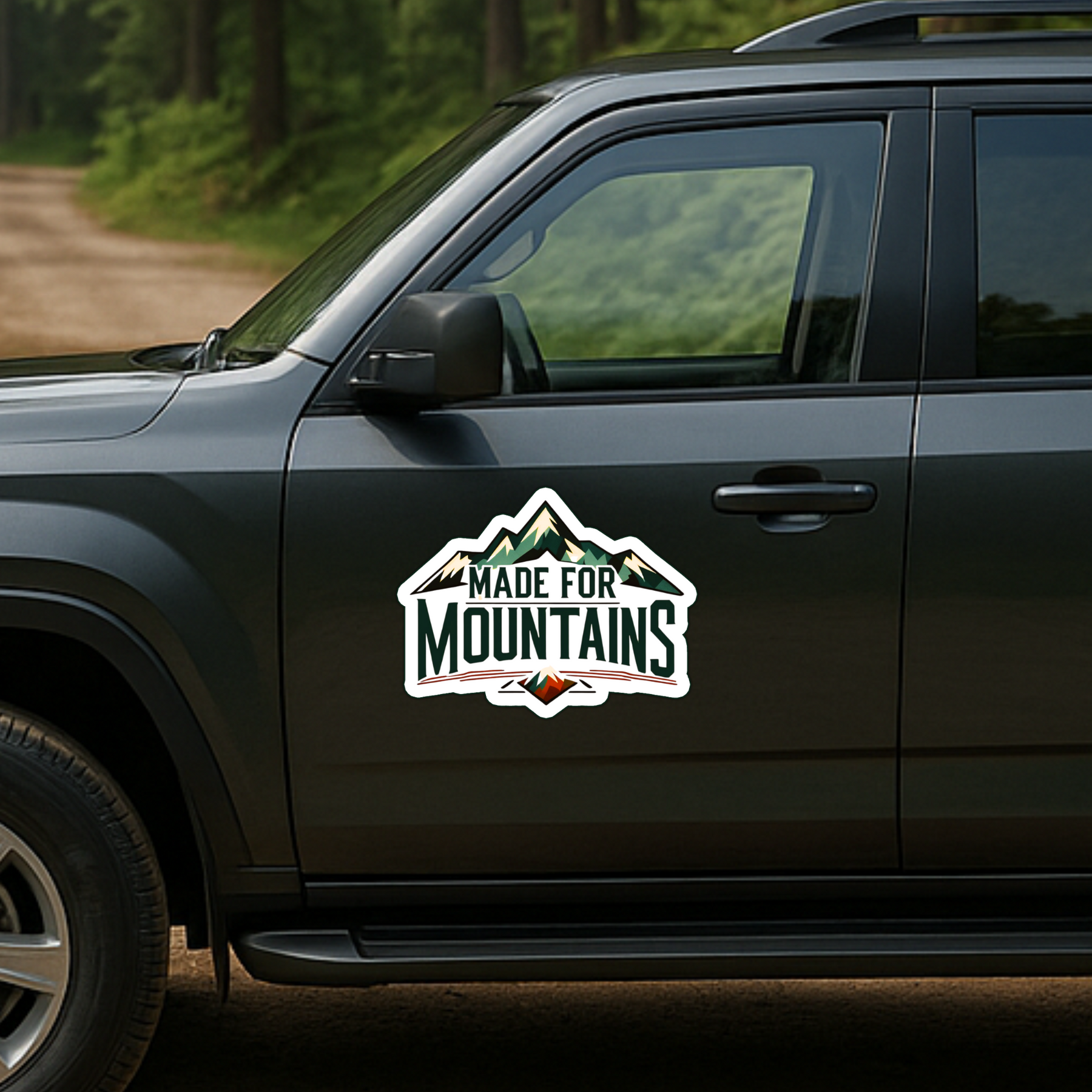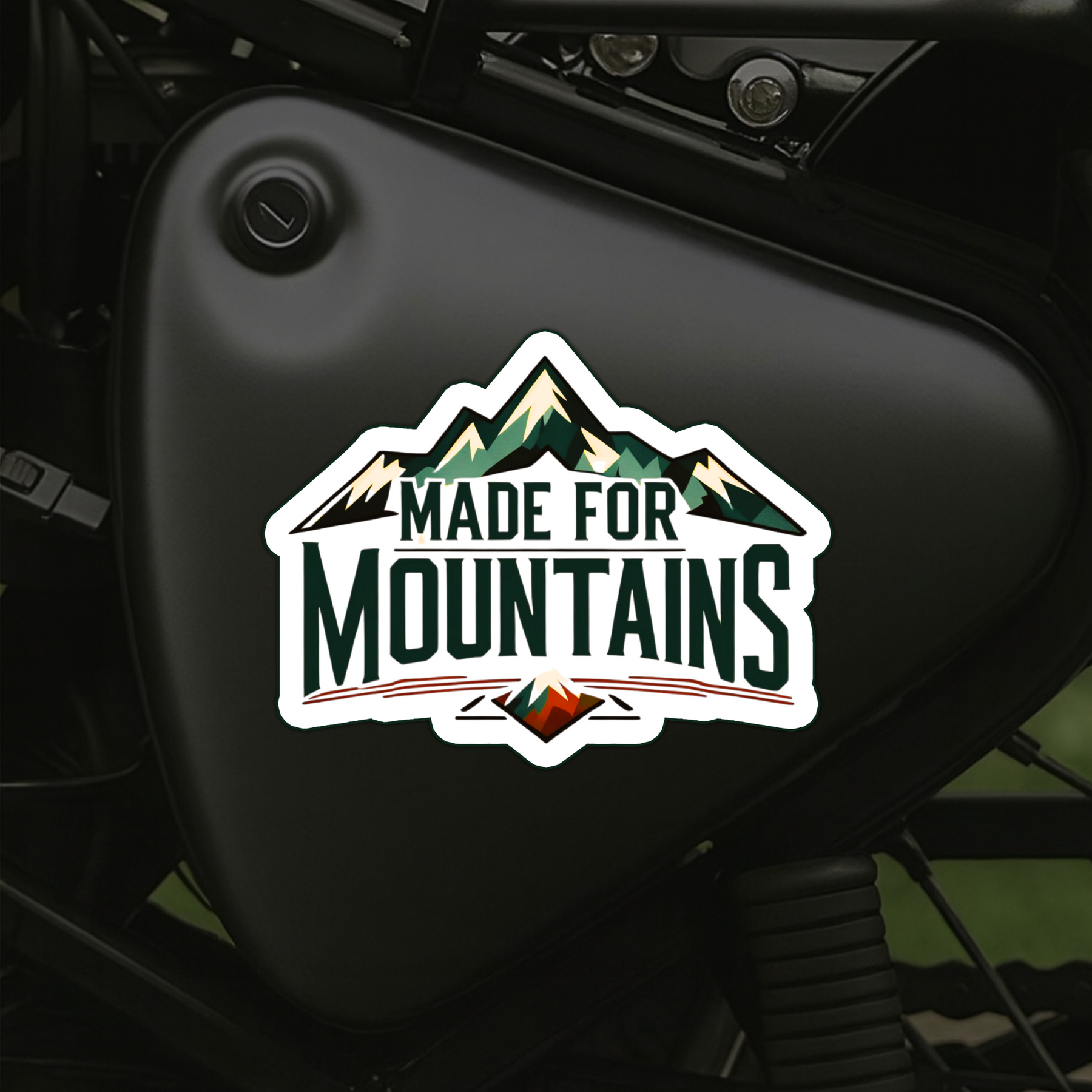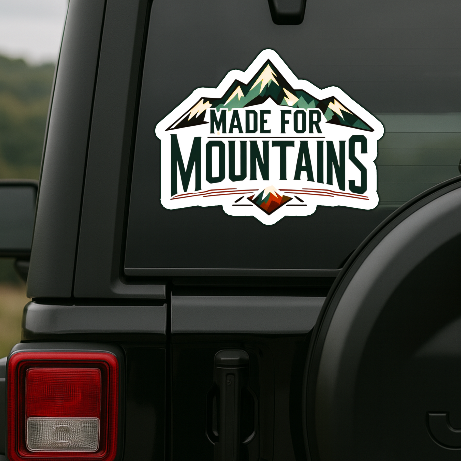 Show your passion for high-altitude adventures with the STIXY Made for Mountains Sticker, a waterproof STIXY sticker crafted for explorers and off-road lovers. Featuring bold mountain peaks in deep green and orange tones, this design symbolizes strength, freedom, and the wild spirit of the outdoors.