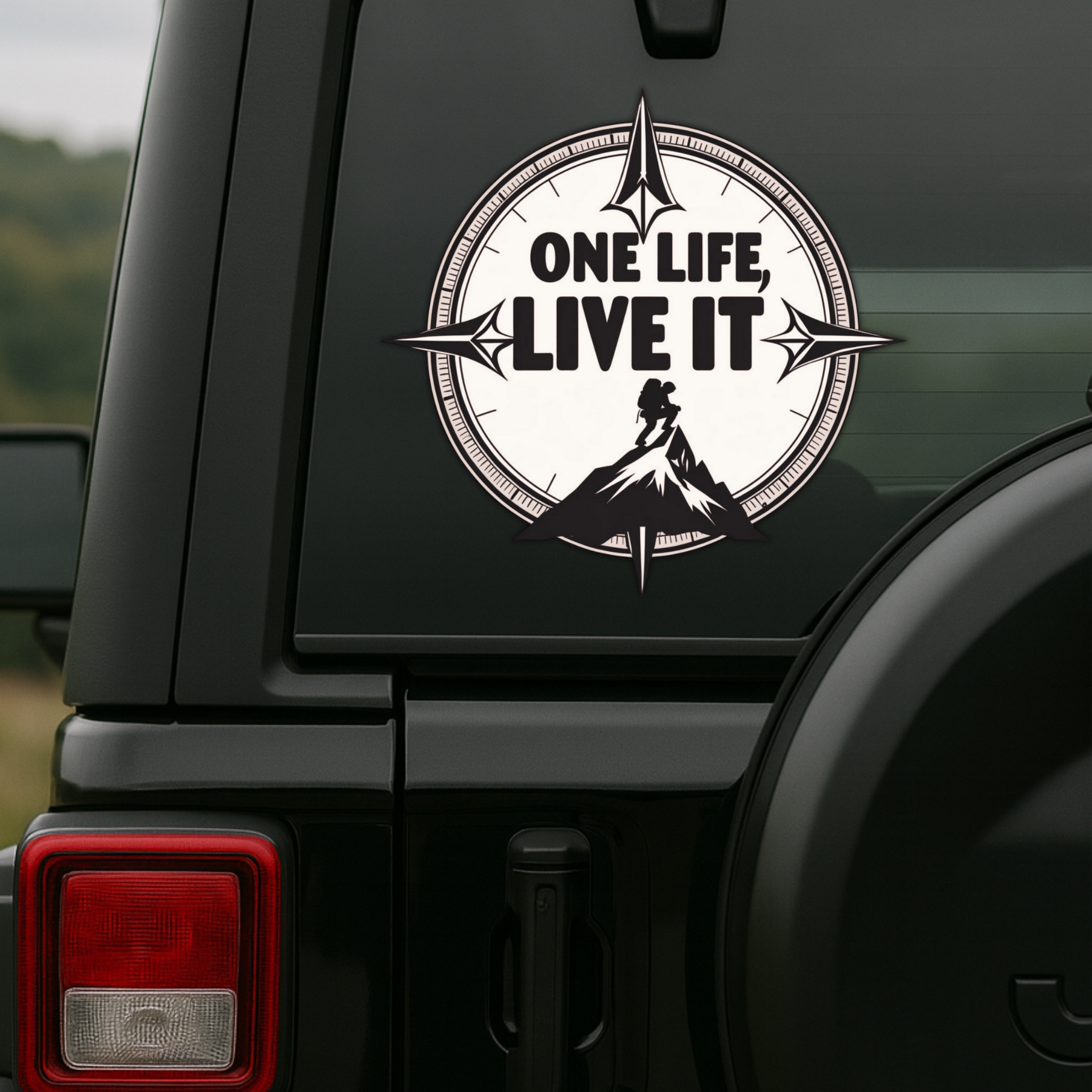 Embrace your adventurous spirit with the STIXY One Life Live It Sticker, crafted for explorers, trekkers, and dreamers who live life beyond limits. This bold STIXY sticker features a mountain climber within a compass design — symbolizing freedom, courage, and the journey toward your goals.