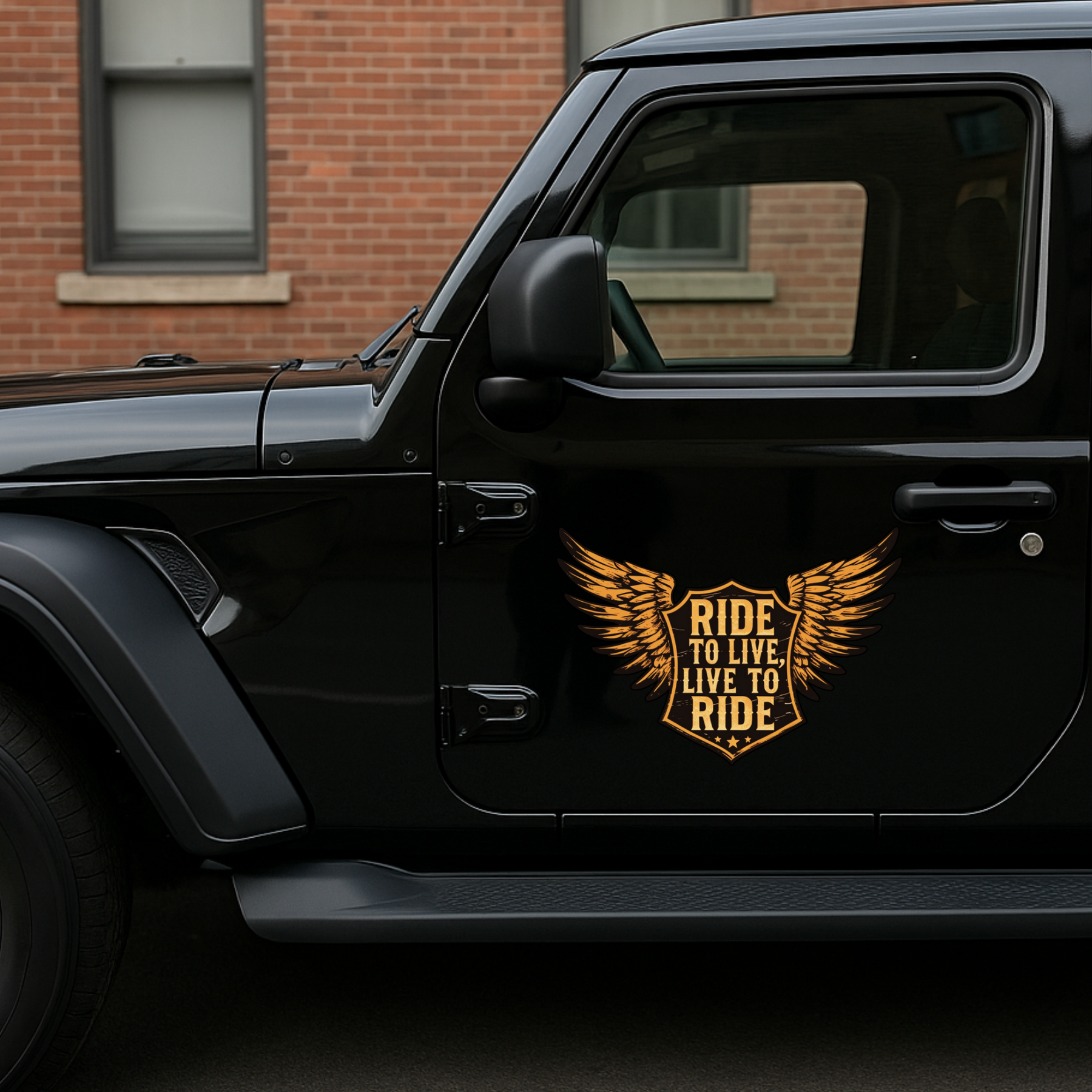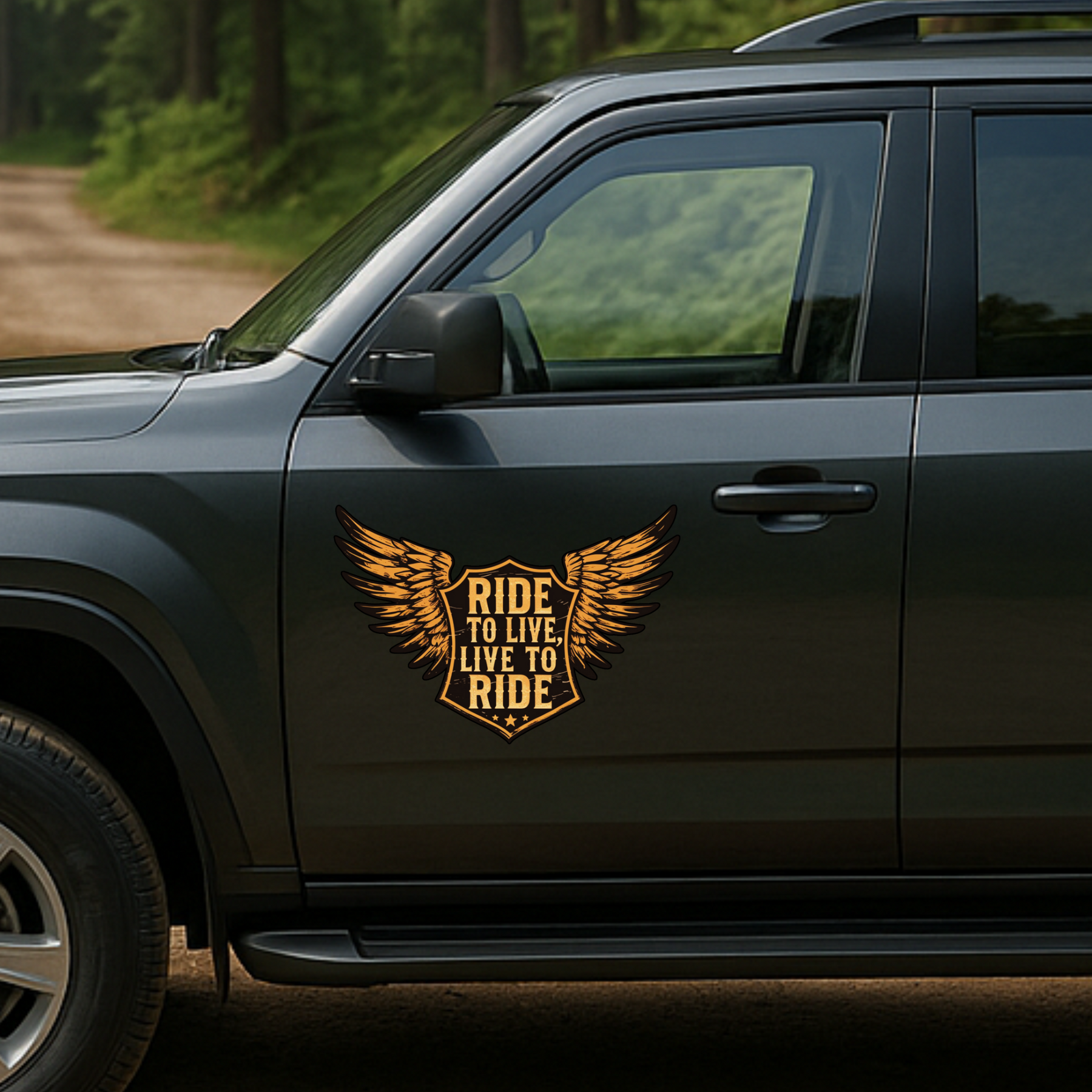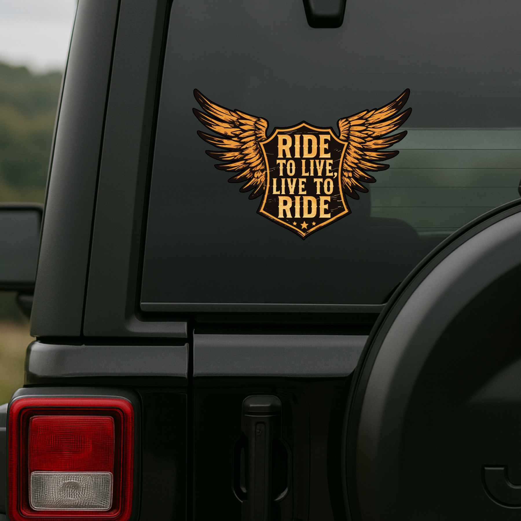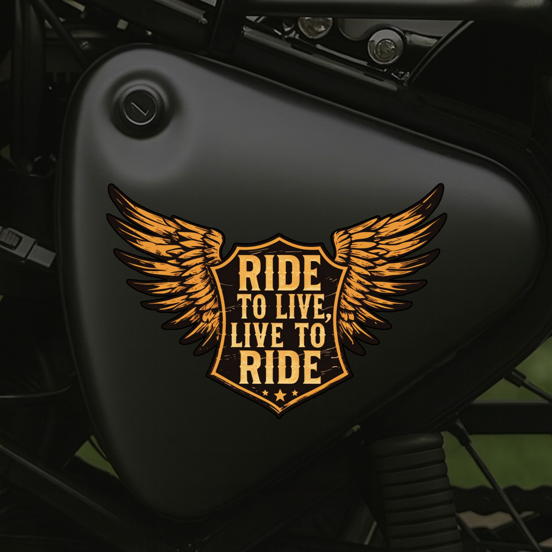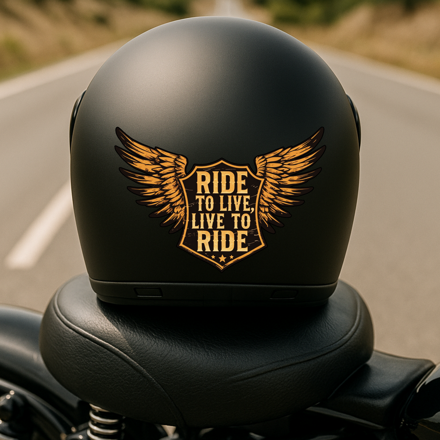 Celebrate your passion for the open road with the STIXY Ride to Live, Live to Ride Sticker, a waterproof STIXY sticker crafted for riders who live by the throttle. Designed with vintage golden wings and a rugged badge emblem, it symbolizes freedom, brotherhood, and the soul of every true biker.