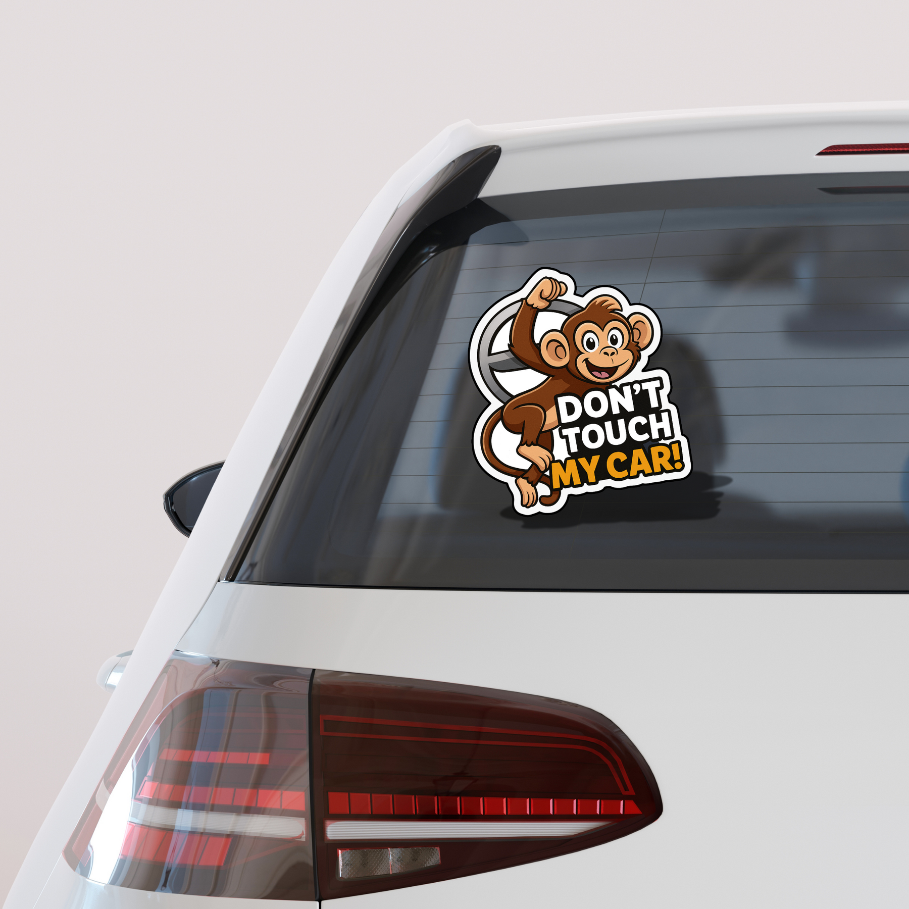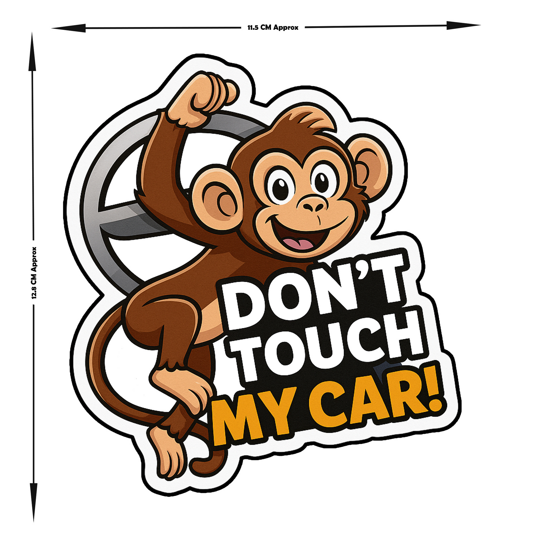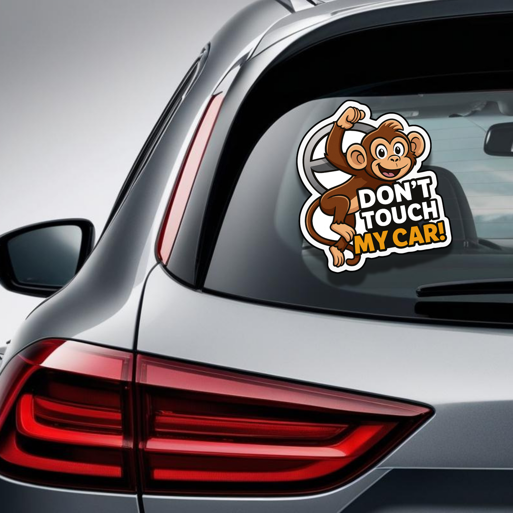 Add a playful yet firm warning to your ride with the STIXY™ “Don’t Touch My Car!” Hanging Monkey Sticker. Featuring a cheerful cartoon monkey swinging from a steering wheel, this design is perfect for car and bike owners who like to mix humor with a clear message.