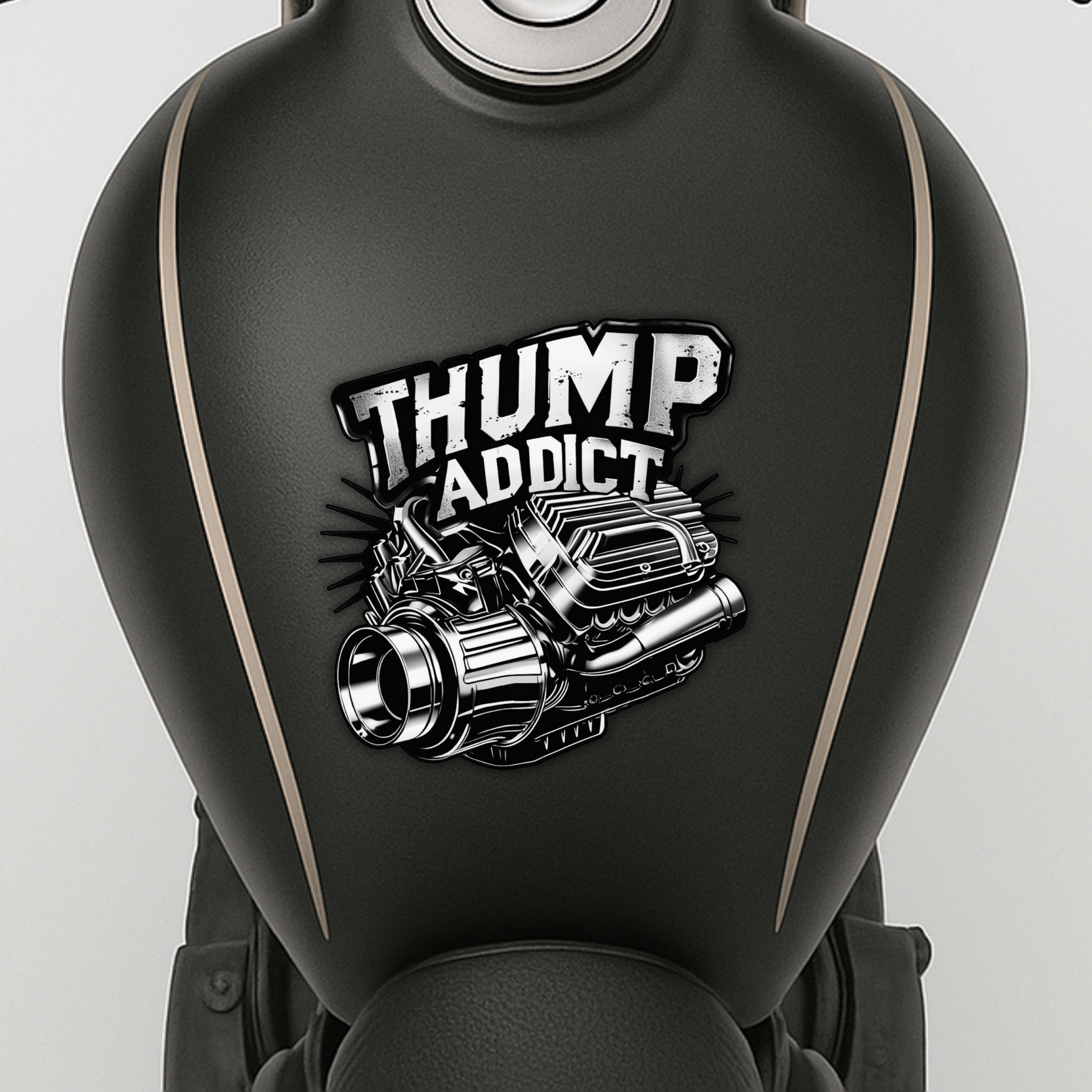 Made with premium waterproof vinyl and UV-resistant lamination, this sticker is perfect for your bike tank, helmet, or garage wall. Whether you’re cruising city roads or conquering highways, wear your addiction proudly — because once you feel the thump, there’s no going back.