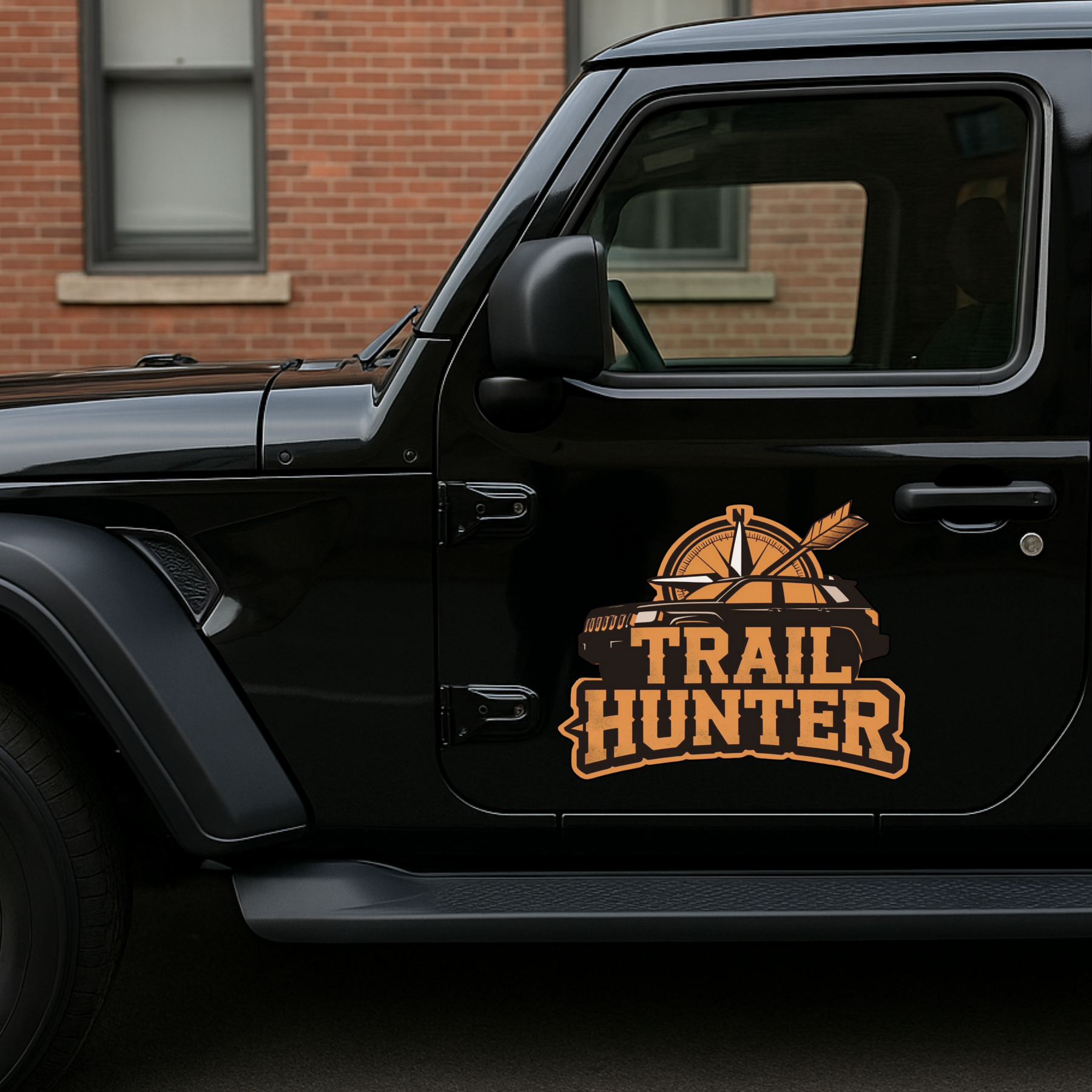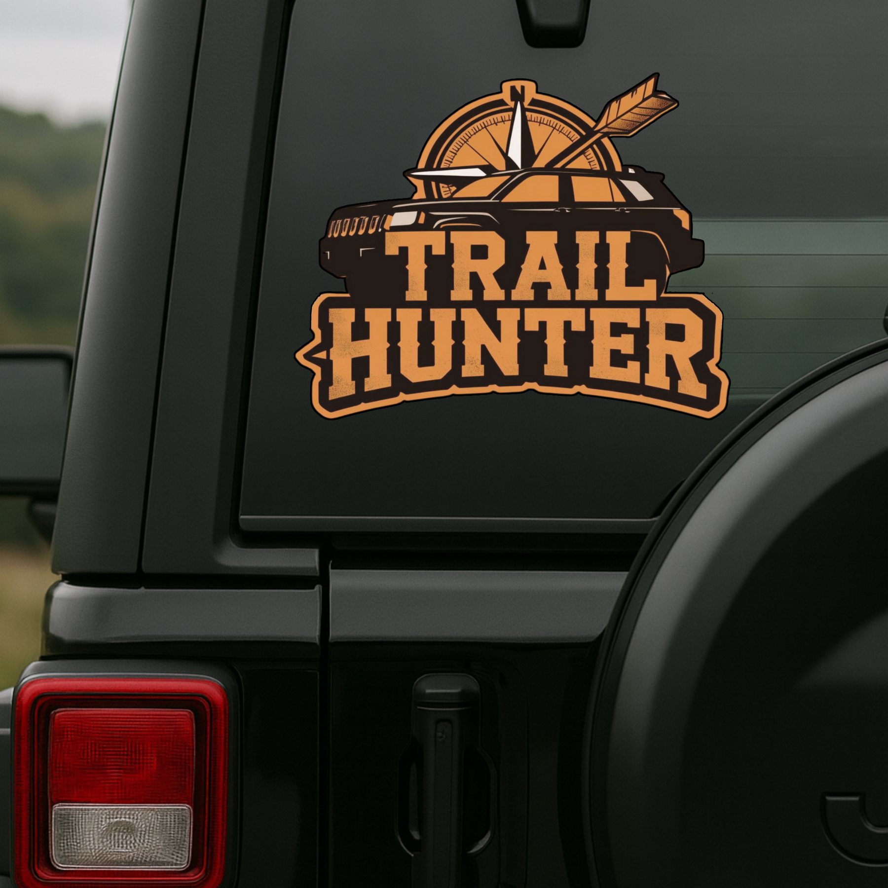 Fuel your passion for exploration with the STIXY Trail Hunter Sticker, a waterproof STIXY sticker built for true off-roaders who live to chase unknown paths. The design features a bold SUV with a compass and arrow, symbolizing direction, grit, and adventure — perfect for those who carve their own trails through dust and terrain.