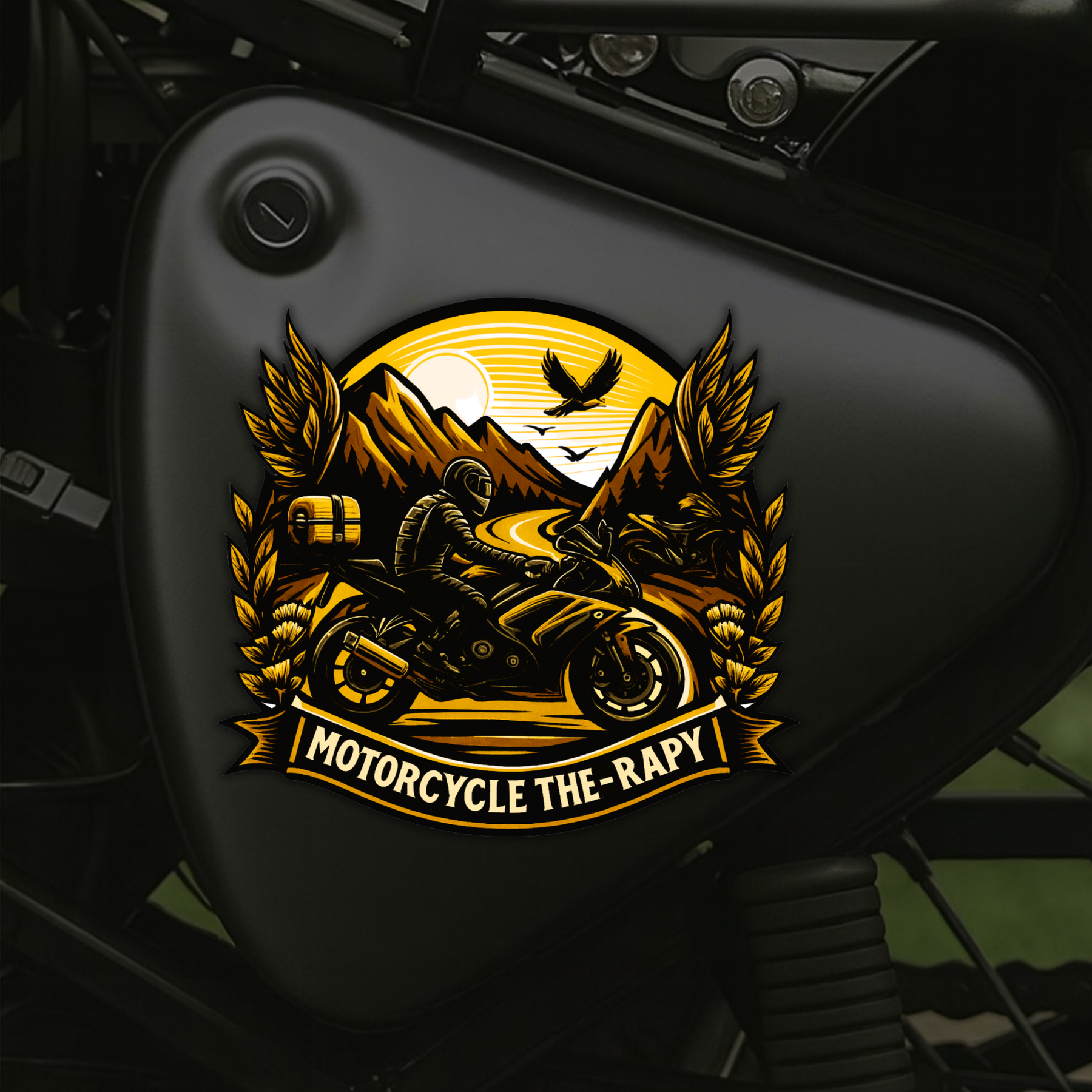 Ride away from stress with the STIXY Motorcycle Therapy Sticker, a bold design made for bikers who find peace on open roads. This detailed STIXY sticker captures the perfect escape — a rider cruising through mountains and sunlight, symbolizing the healing power of two wheels and freedom.