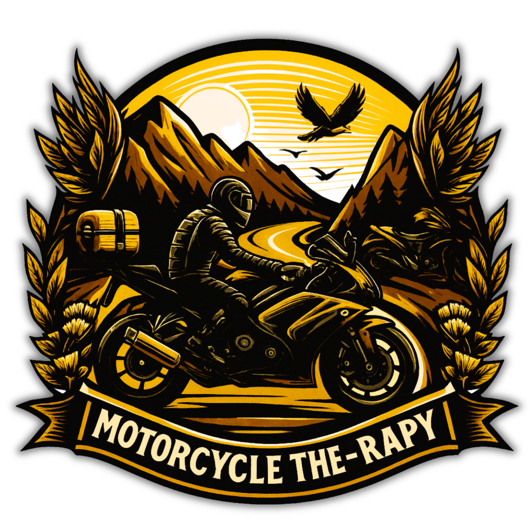 MOTORCYCLE THERAPY STICKER – RIDER ADVENTURE & TRAVEL DECAL