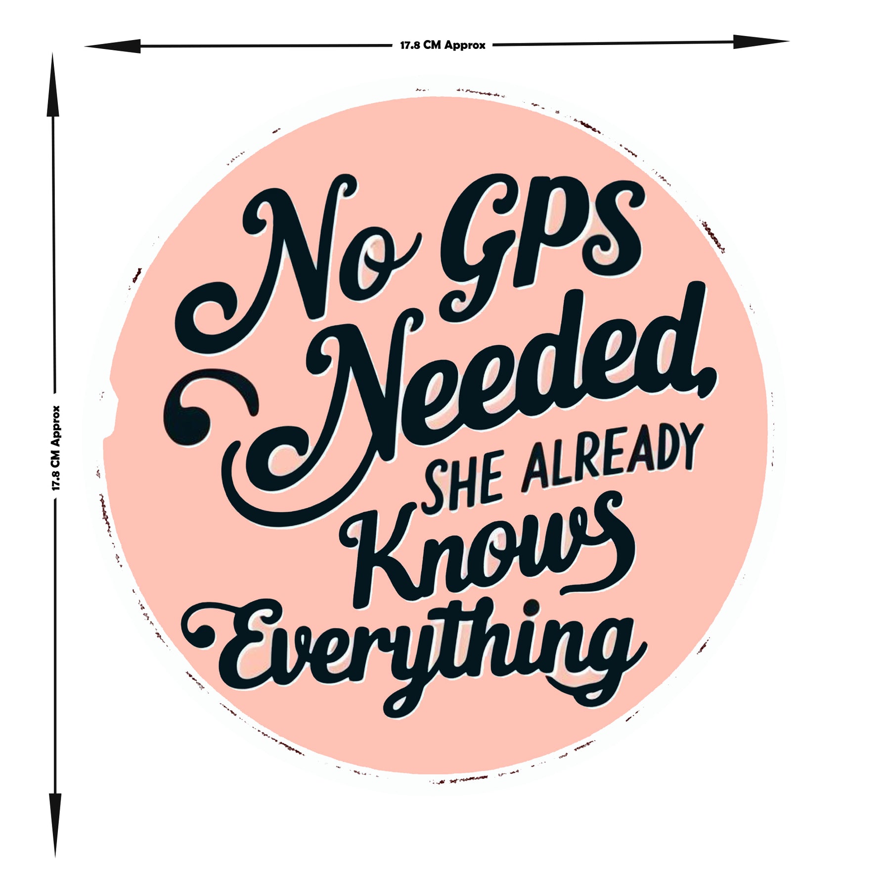 Add a hilarious reality check to your car with this “No GPS Needed – She Already Knows Everything” sticker, perfectly summing up road trips with the ultimate co-driver—your wife! Whether it's playful sarcasm or a tribute to her sixth sense of direction, this round sticker delivers laughs with every ride. Ideal for dashboards, bumpers, or as a relatable gift for married couples, it’s made with high-quality waterproof vinyl that’s easy to apply and peel.