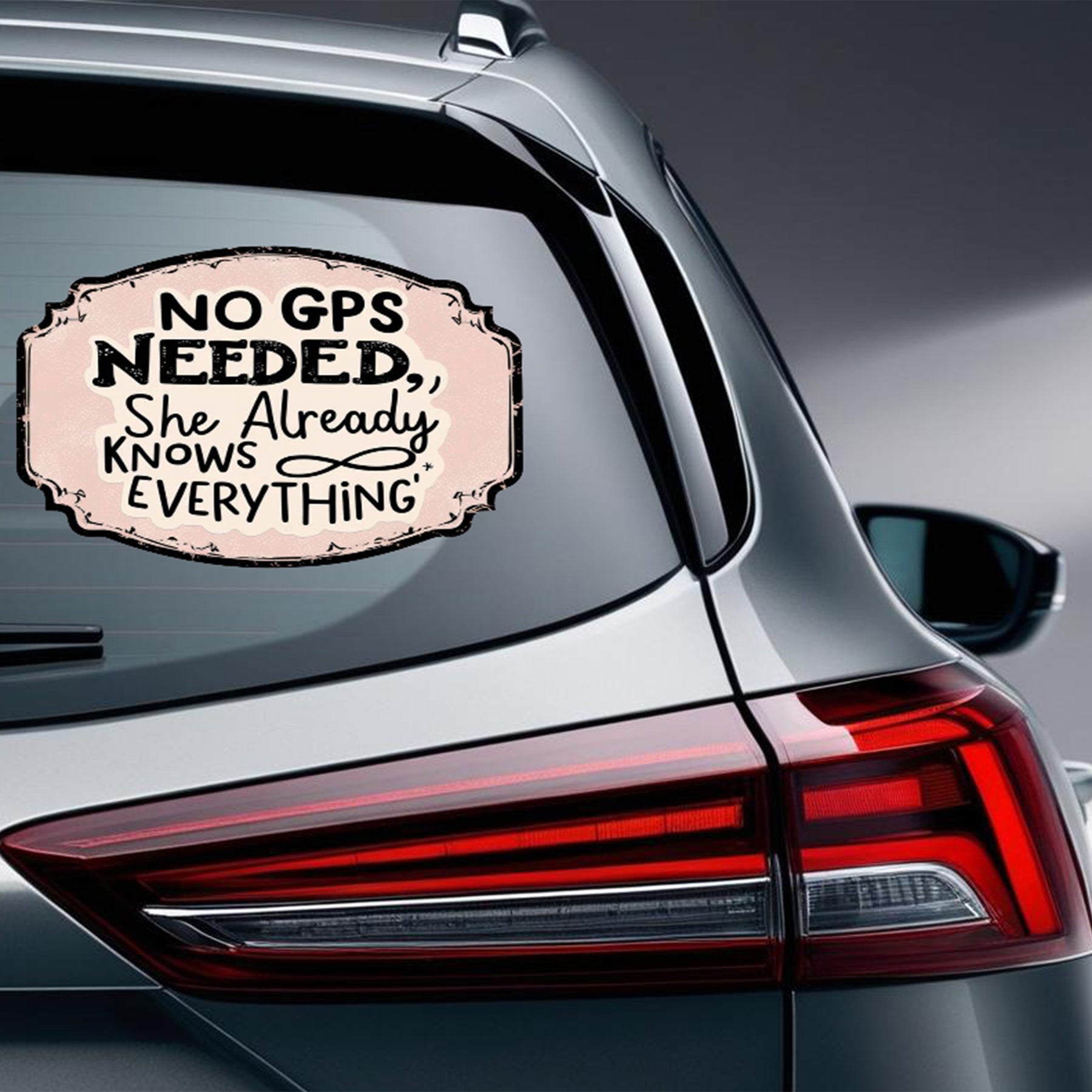 Celebrate her flawless sense of direction with this vintage-style “No GPS Needed – She Already Knows Everything” sticker – a cheeky and charming tribute to every know-it-all co-pilot! With a distressed retro frame design and playful fonts, this sticker is perfect for windshields, dashboards, or as a funny gift for married couples. Waterproof and durable, it brings humor and character wherever you stick it – just like she brings confidence to every road trip.