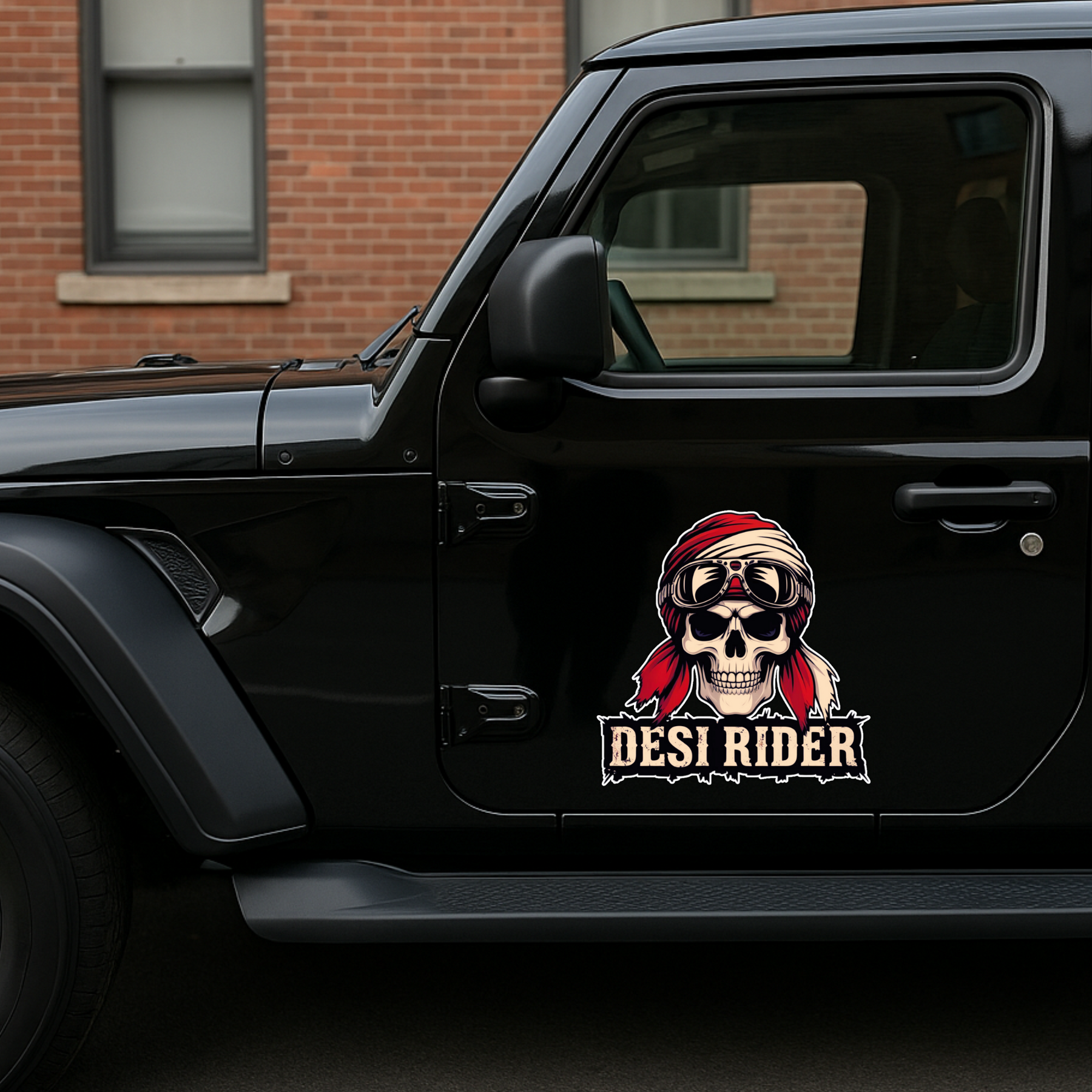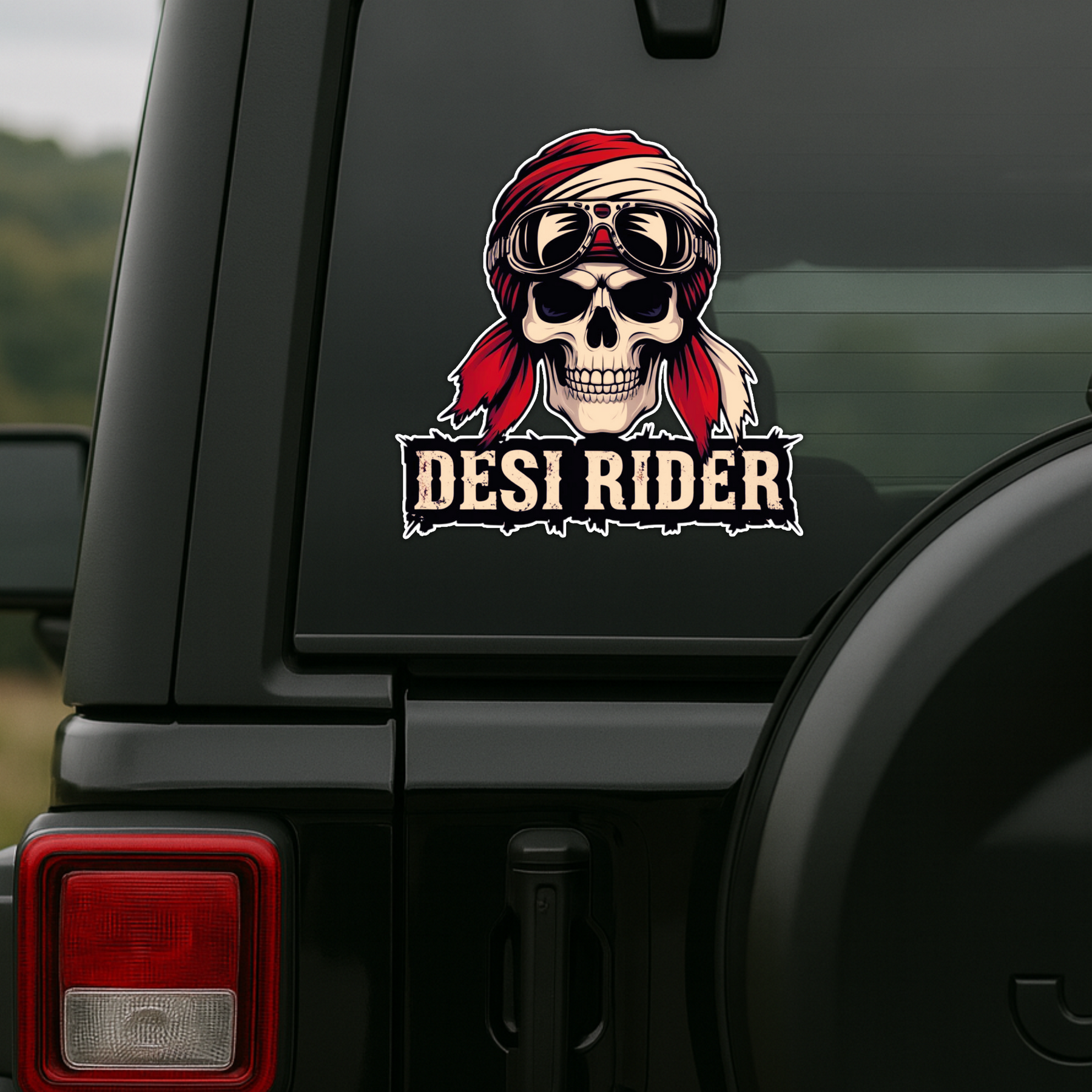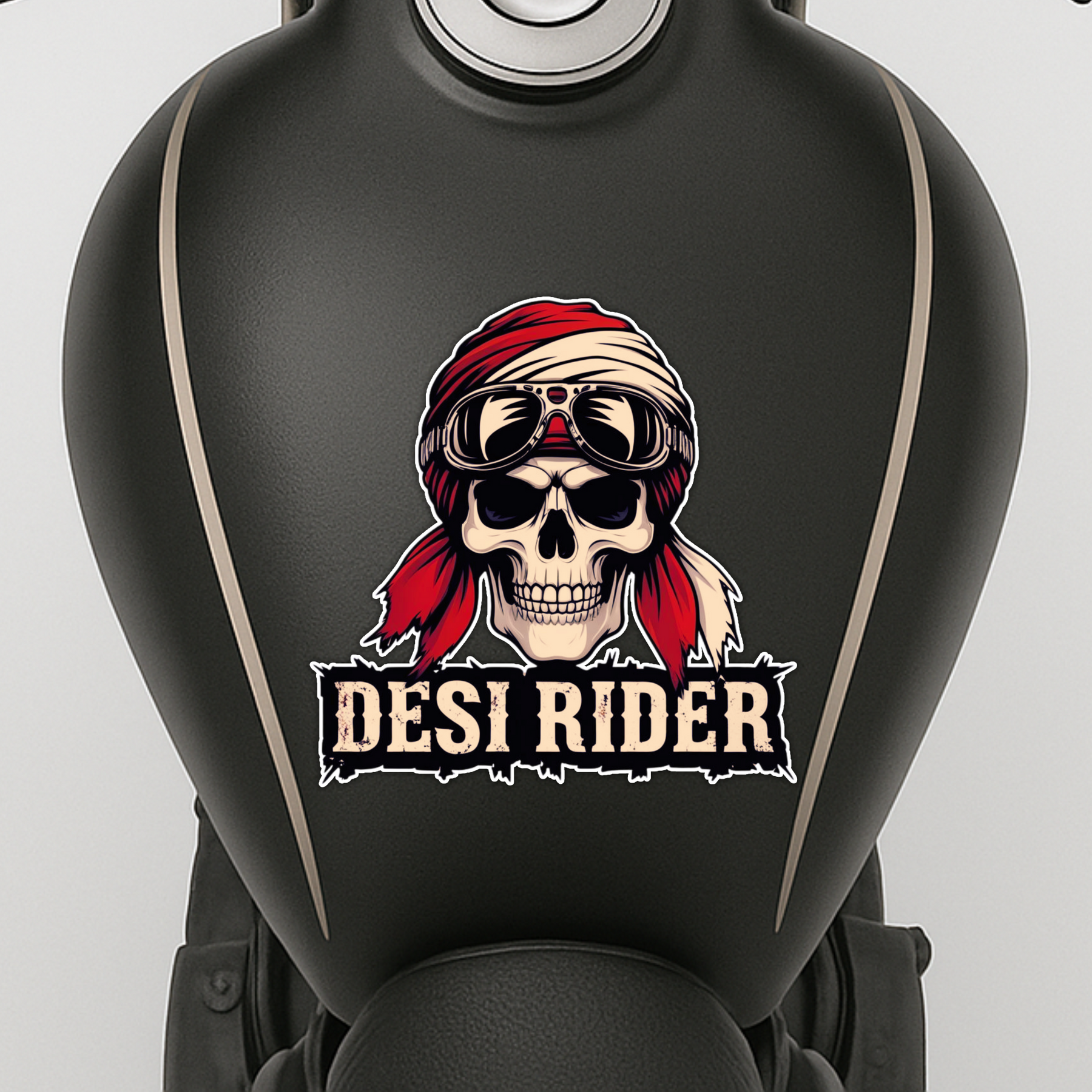 Show off your fearless road spirit with the STIXY Desi Rider Sticker, a bold STIXY sticker designed for true Indian bikers who ride with attitude. Featuring a rugged skull wearing a red bandana and vintage riding goggles, this design captures the raw desi biker vibe — loud, proud, and unstoppable.