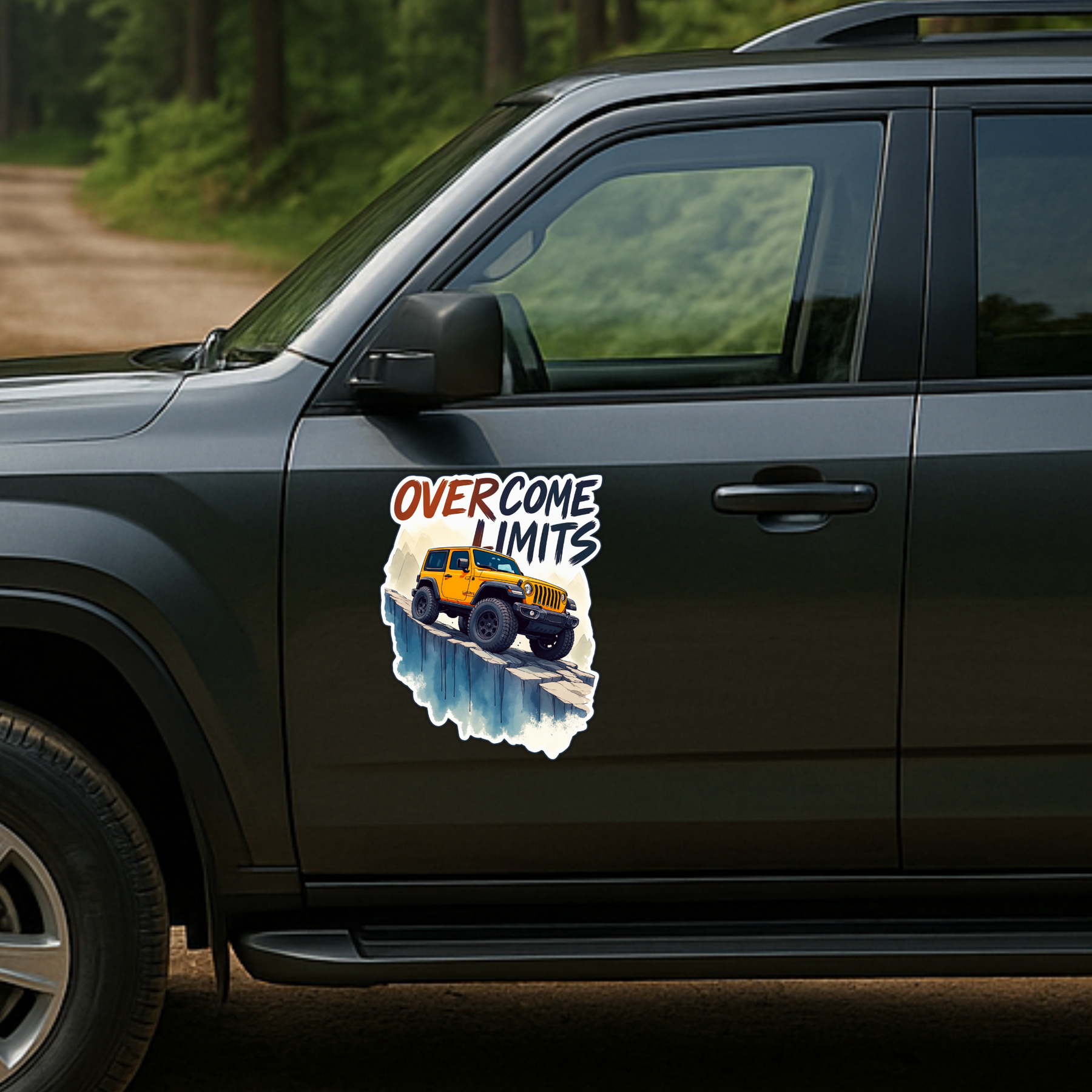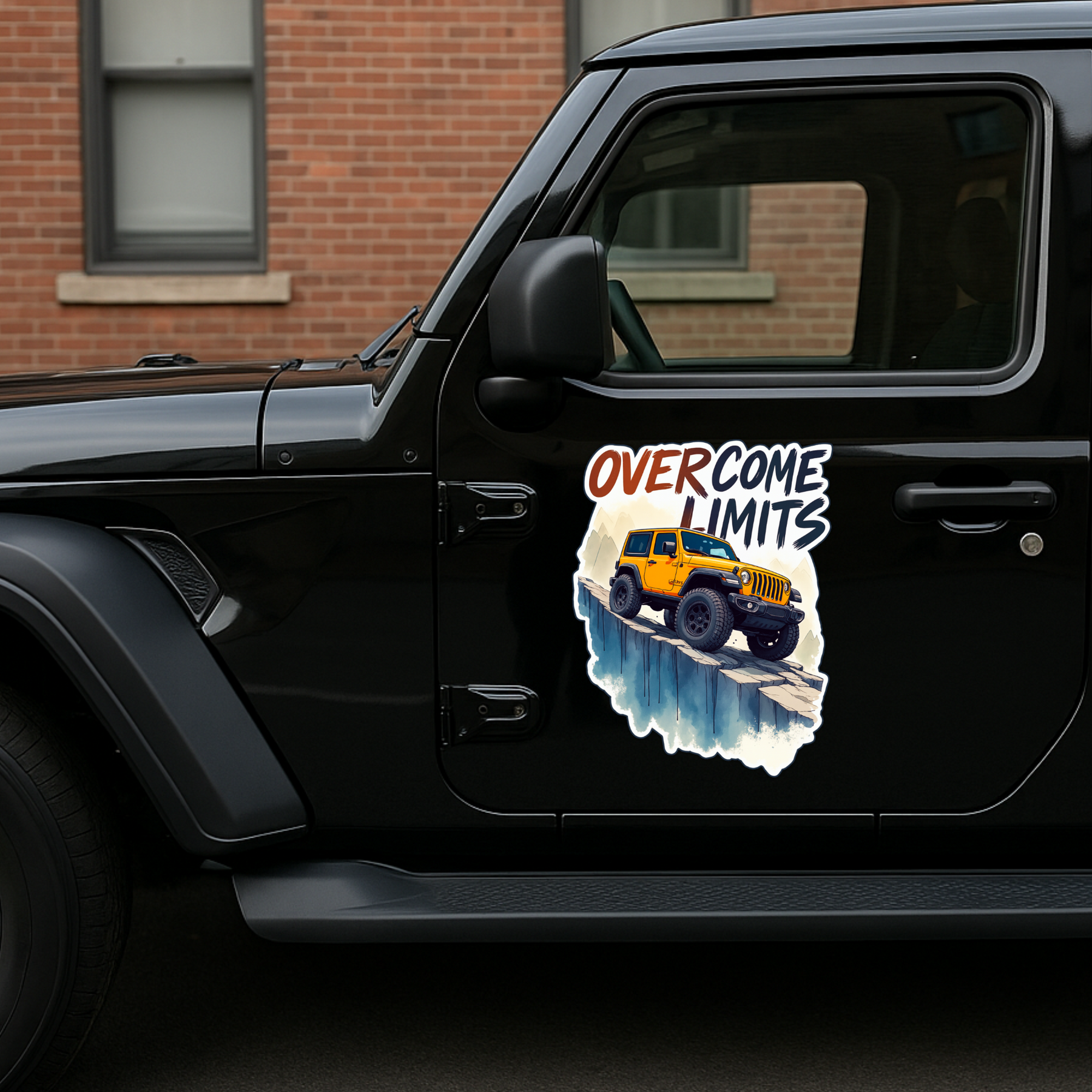 Push beyond boundaries with the STIXY Waterproof Overcome Limits Jeep Sticker, designed for those who challenge every obstacle on and off the road. Featuring a bold yellow jeep on a cliff, this premium waterproof STIXY sticker captures the fearless energy of true adventure seekers who thrive on conquering limits.