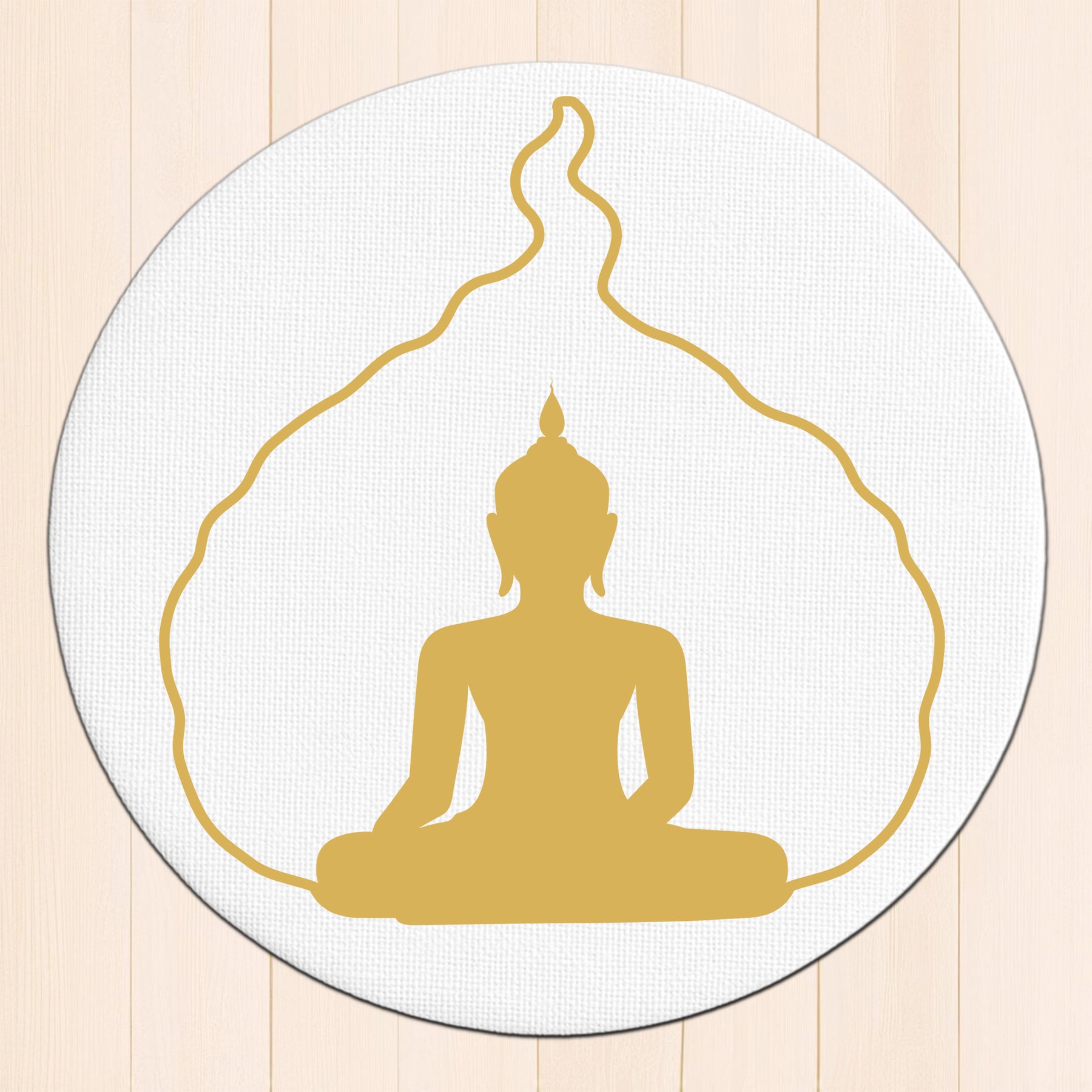 Buddha Meditation Wall Frame – Glossy Golden Round Aura Design