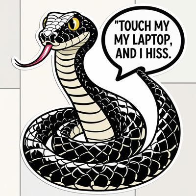 Touch My Laptop, and I Hiss – Angry Black Cobra Sticker