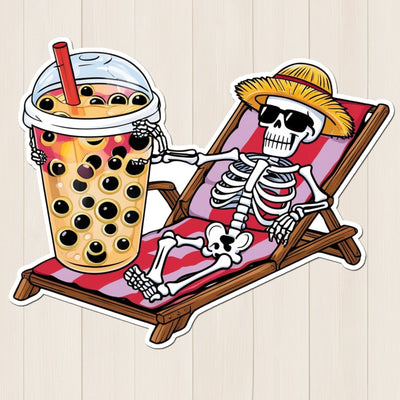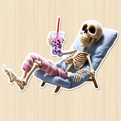 Lazy Bones & Boba – Funny Skeleton Sticker