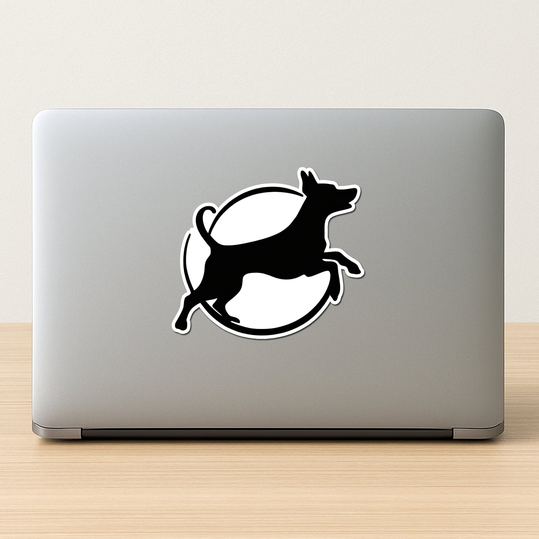 Celebrate the spirit of our beloved desi dogs with this dynamic Desi Dog Silhouette Sticker, featuring a bold leaping dog against a clean circular backdrop. Perfect for those who admire Indian street dog culture or want to express canine love with attitude. Ideal for laptops, notebooks, almirahs, or workspace decor, this vinyl sticker is matte-finished, waterproof, and built to stick strong — just like our desi dogs!