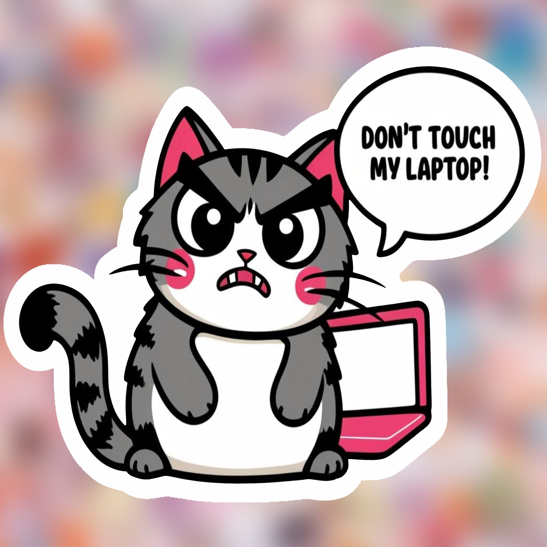 Keep nosy hands away from your tech with this hilarious “Don’t Touch My Laptop!” sticker featuring a furious cat guarding their precious device. Perfect for cat lovers, students, office workers, and anyone tired of unwanted clicks, this waterproof vinyl decal adds humor and a warning to your laptop, almirah, or desk. Cute, angry, and purr-fectly relatable!