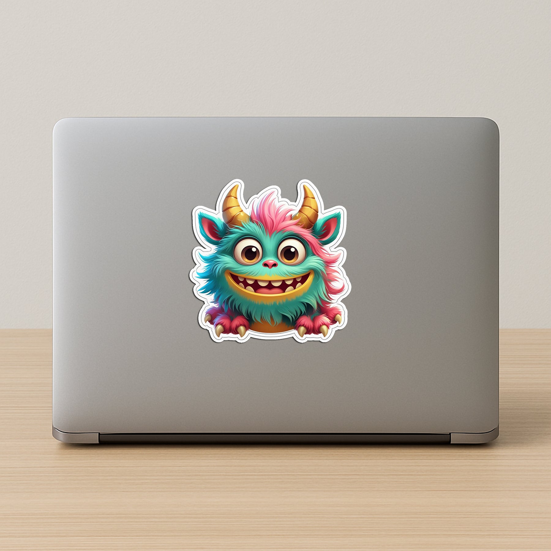 Fluffy Frenzy – Colorful Monster Sticker | Funny Cartoon Vinyl Decal