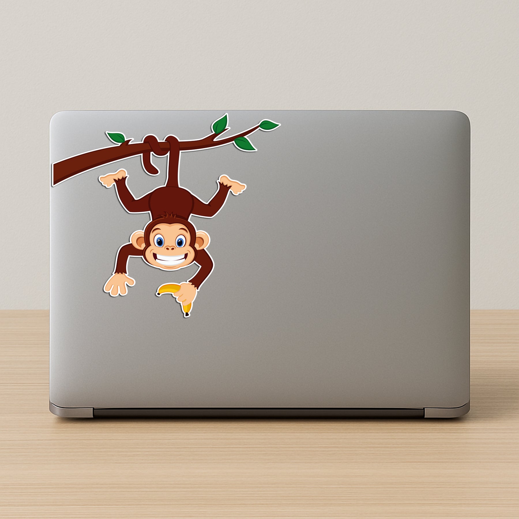 Add instant mischief and jungle fun to any space with this adorable monkey hanging upside down with a banana! Whether it’s for your kid’s study table, laptop, or your living room wall – this vinyl sticker brings smiles, giggles, and vibrant vibes wherever it sticks. Made from durable waterproof vinyl with a glossy finish, it’s perfect for kids’ rooms, animal lovers, or those who enjoy quirky cartoon-style decor.
