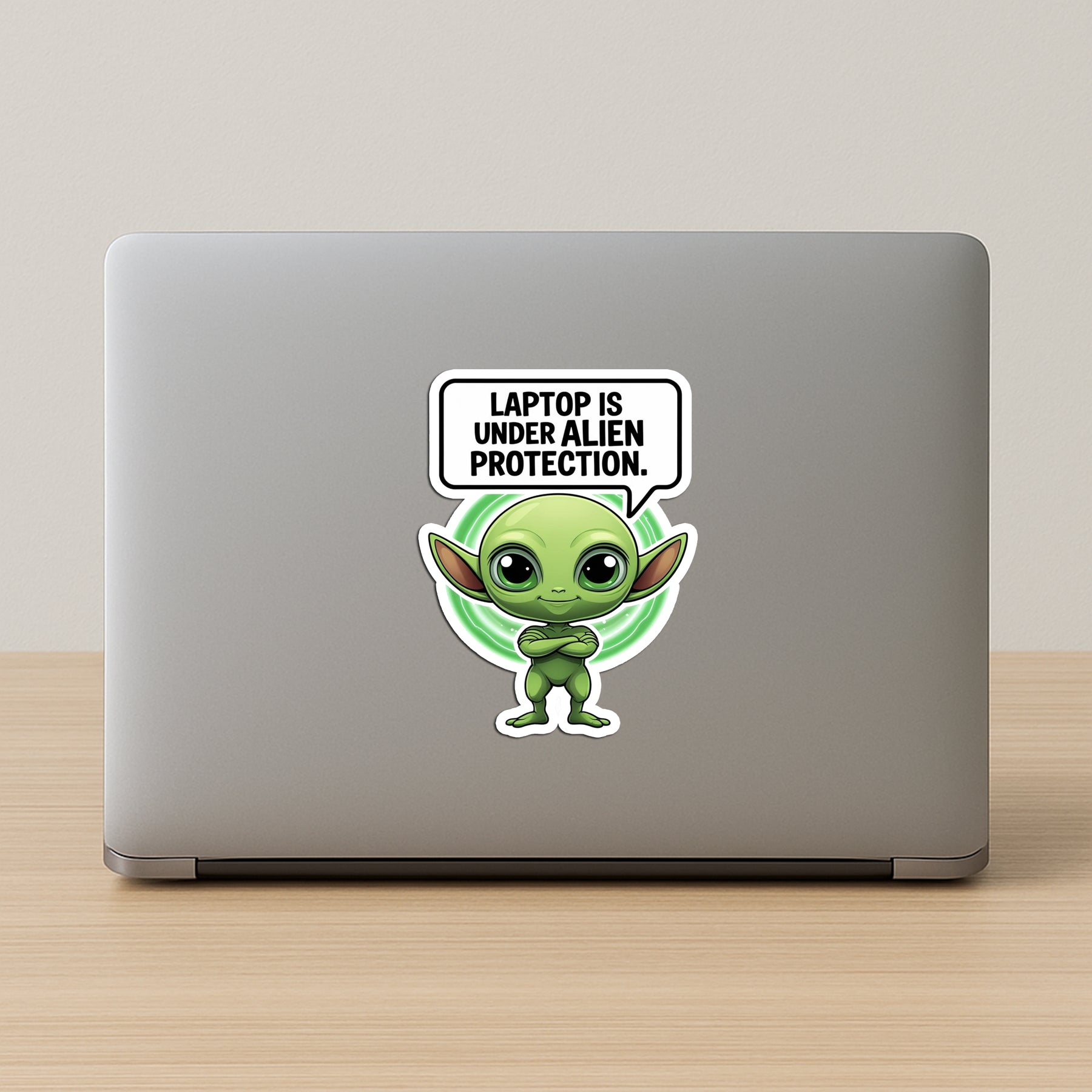 Keep intruders away with an alien twist! This adorable yet assertive vinyl sticker features a green alien standing guard with the bold message: “Laptop is under alien protection.” Perfect for anyone who believes in privacy, UFOs, or just really loves quirky humor. Stick it on your laptop — and let the alien do the talking. Made with high-quality waterproof vinyl for a clean finish that sticks strong and peels clean.