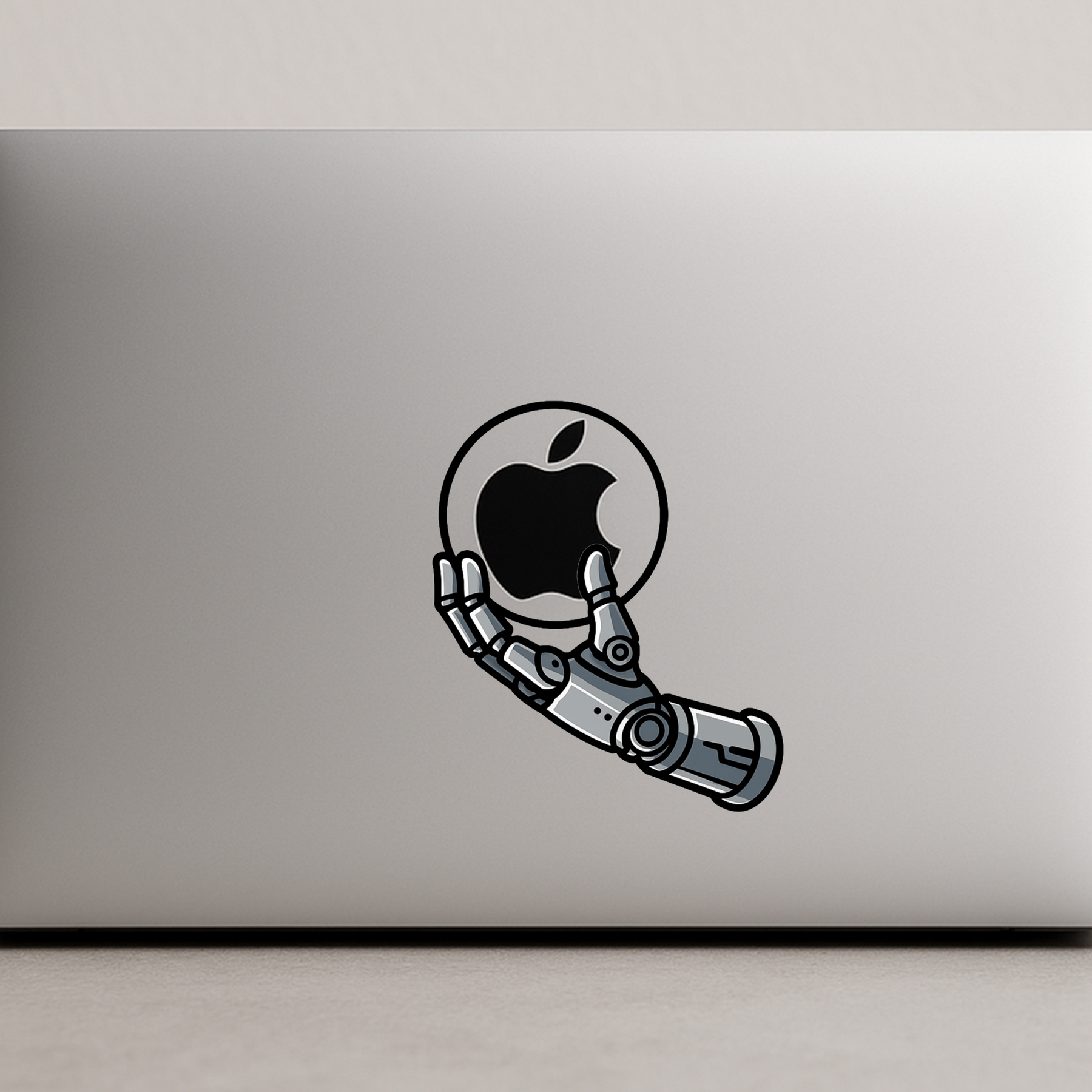 Show off your love for tech and futuristic vibes with this STIXY™ Robotic Hand Sticker. Designed with precision in a high-contrast metallic finish, this sticker makes it look like a robotic hand is carefully holding your laptop logo. Perfect for engineers, techies, gamers, and sci-fi lovers — it adds a sleek and smart look to any Macbook or flat surface.