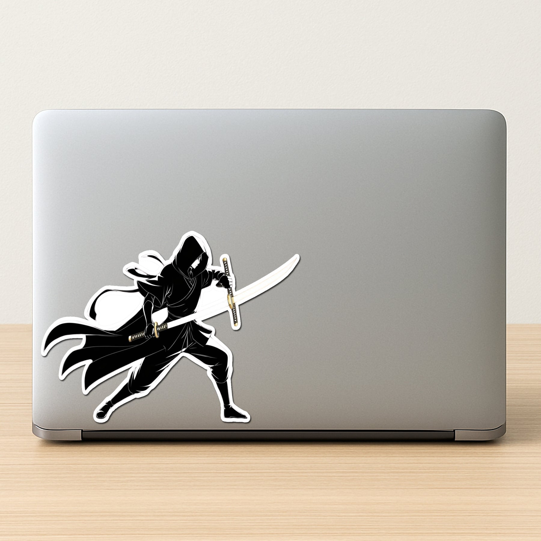 Unleash stealth and strength with this striking Shadow Ninja Warrior sticker. Featuring a cloaked ninja mid-attack with dual katanas, this high-contrast black and white design adds fierce flair to any surface. Whether you're a fan of martial arts, anime, or warrior culture, this durable waterproof matte sticker is perfect for laptops, notebooks . A bold tribute to the unseen hero within.
