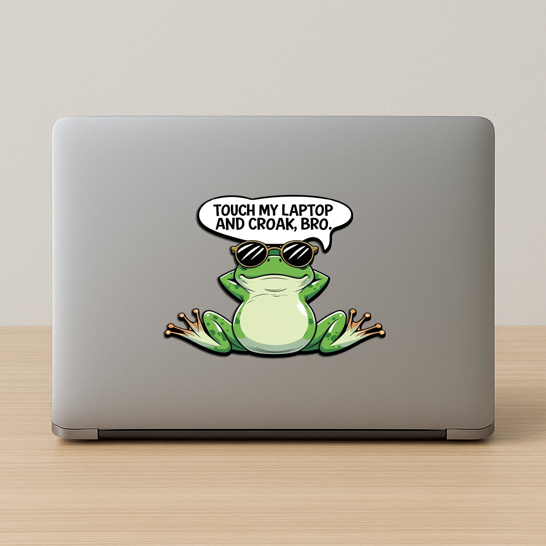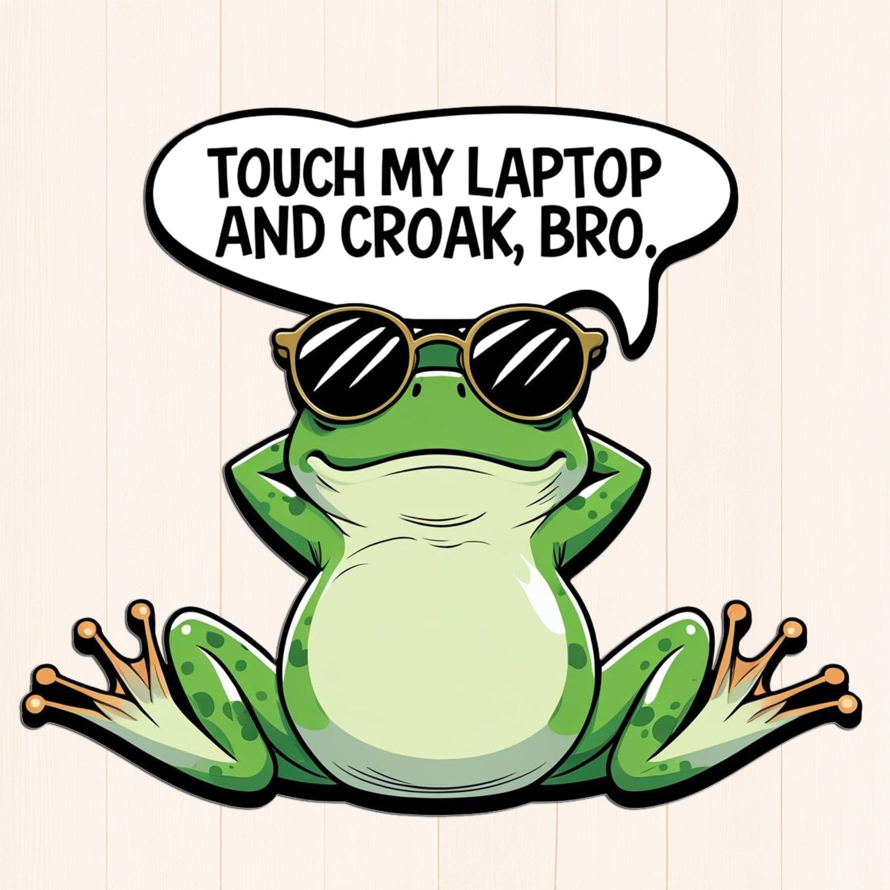 Add some cool croak energy to your laptop with this laid-back frog sticker rocking sunglasses and savage vibes. With the hilarious line βTouch My Laptop and Croak, Bro,β this sticker is perfect for people who love humor, attitude, and reptiles with style. Let your gear speak your mood loud and clear β hands off!