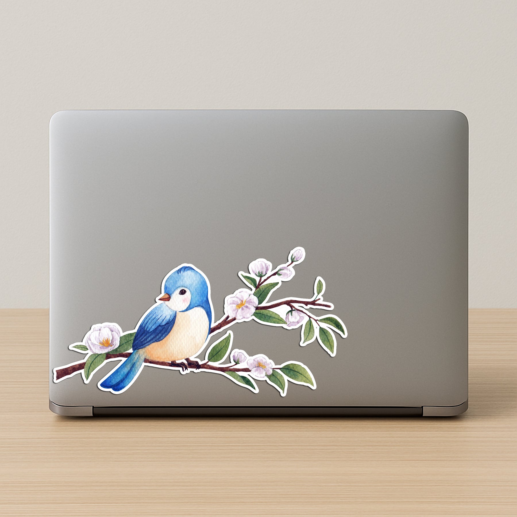 Add a soft and serene touch to your space with this stunning watercolor-style bluebird sticker. Perched gracefully on a cherry blossom branch, this artistic vinyl sticker brings a peaceful, nature-inspired vibe to laptops, journals, mirrors, or even your wall.